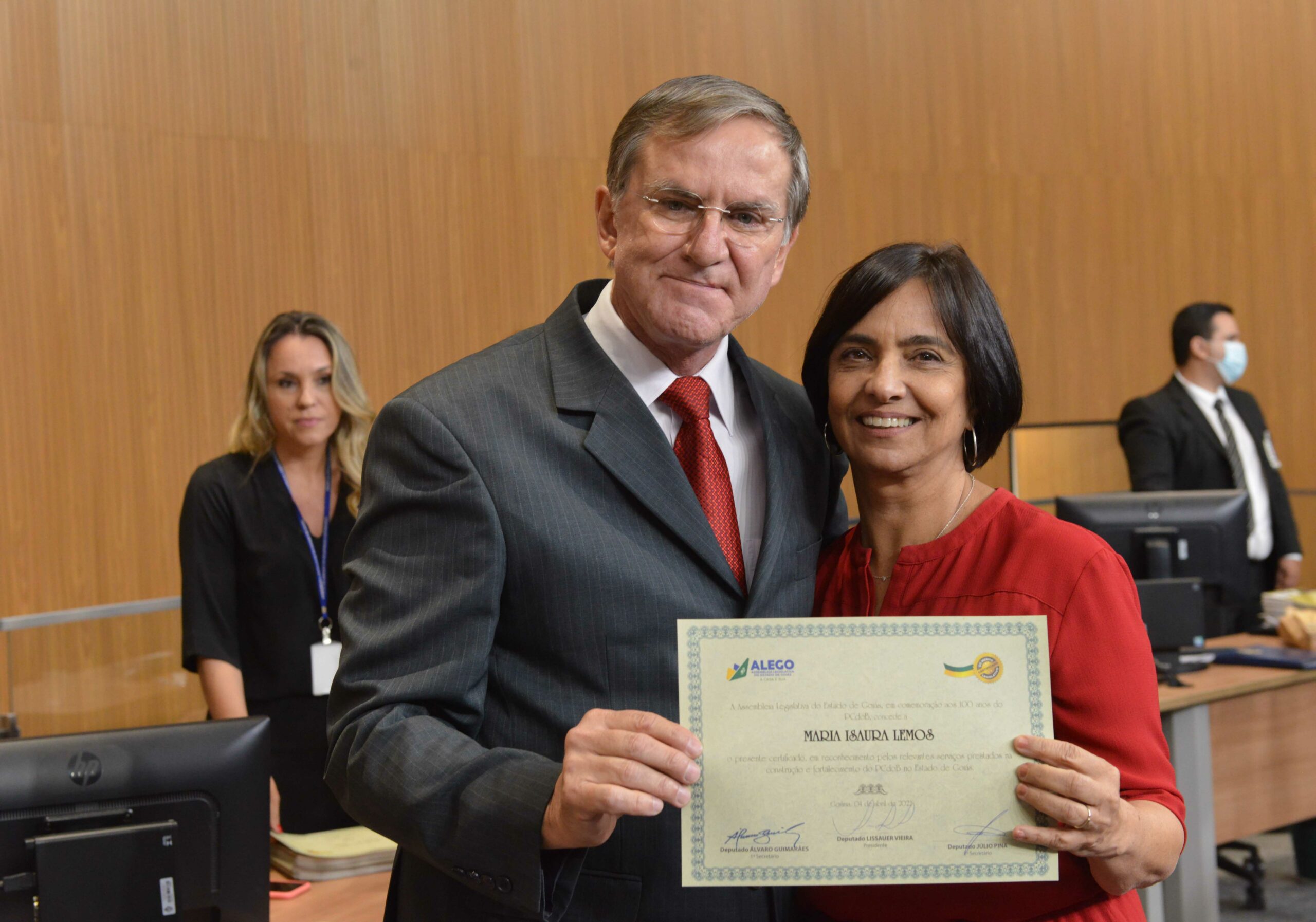 Também discursaram Euler Ivo, Adalberto Monteiro, Aldo Arantes, Fábio Tokarski, Rubens Otoni, Kátia Maria e Denise Carvalho. Em seguida, Antônio Gomide e Isaura Lemos fizeram a entrega do Certificado do Mérito Legislativo aos homenageados da noite.