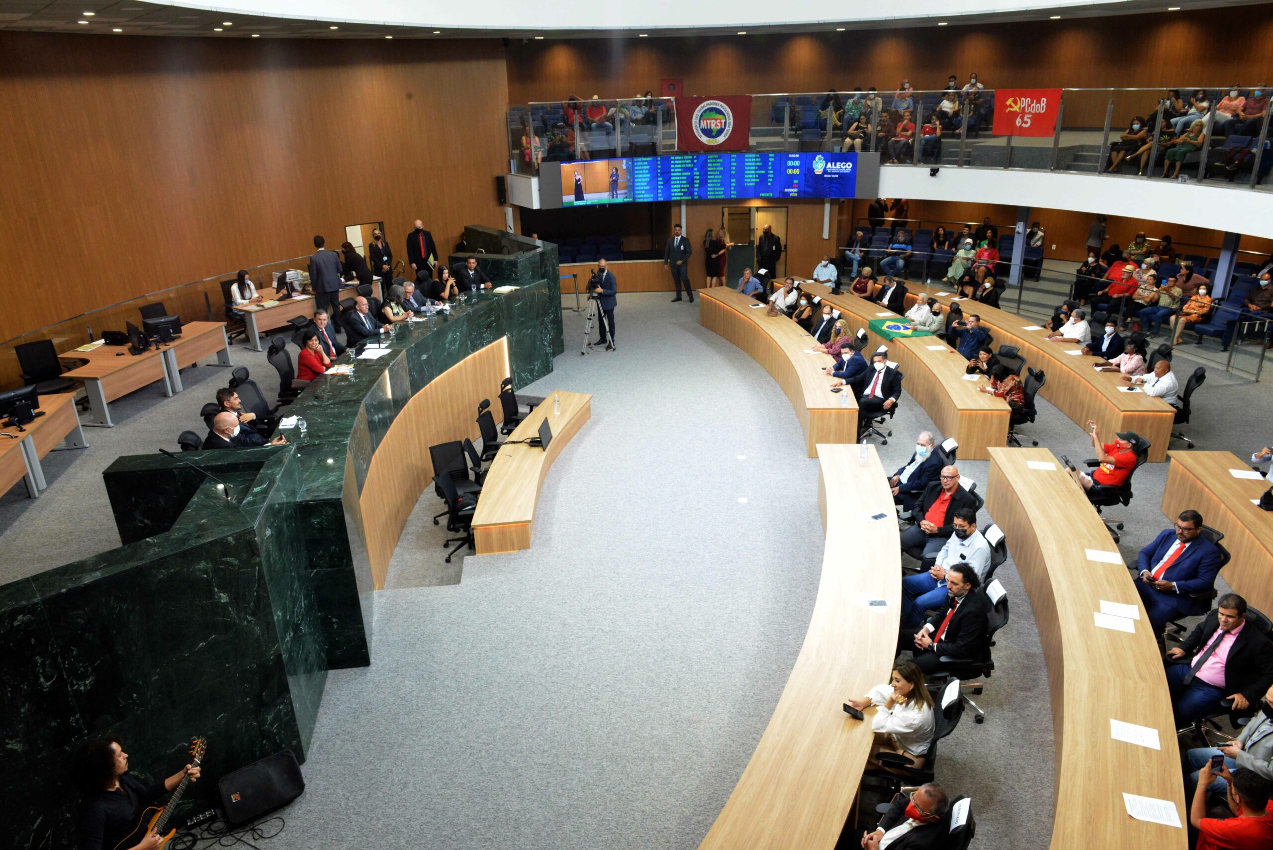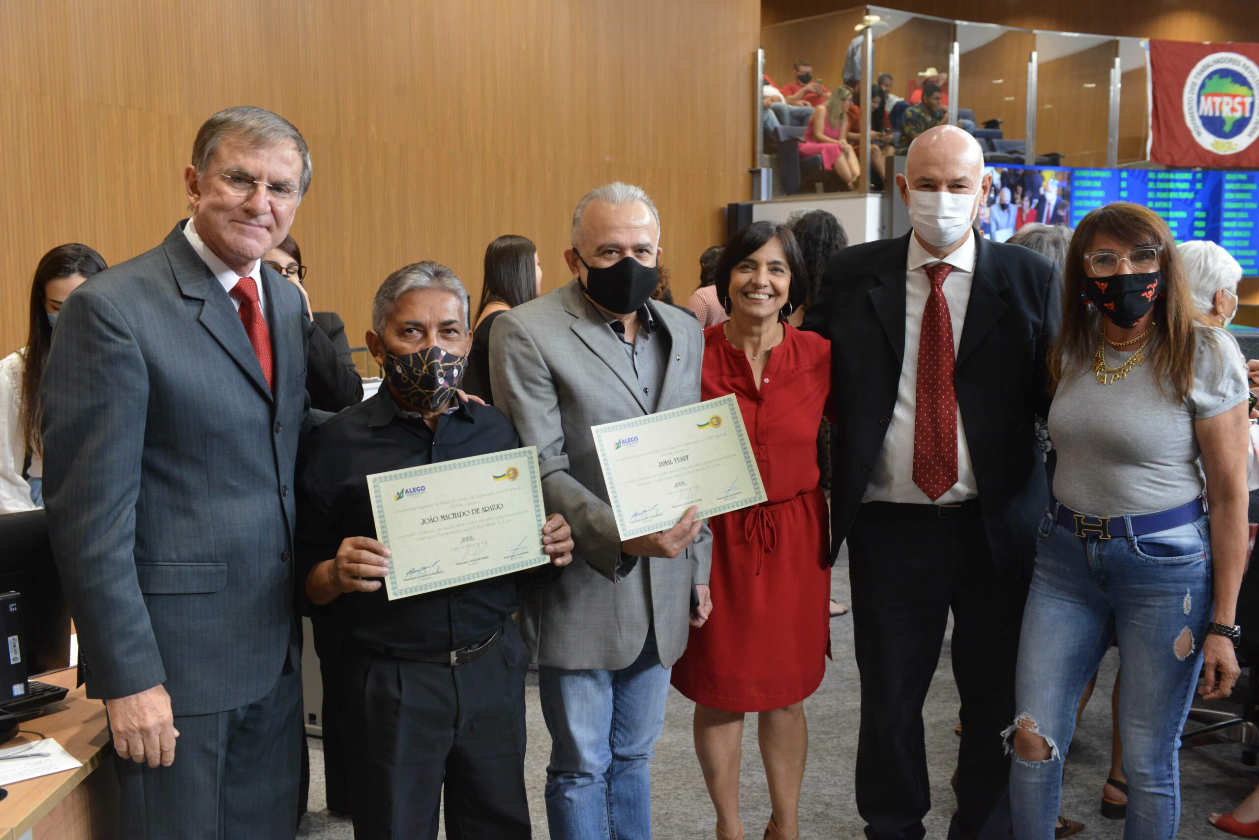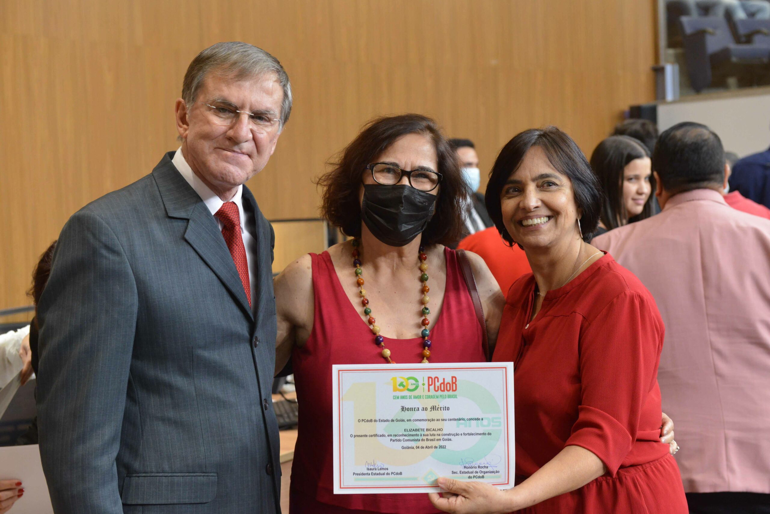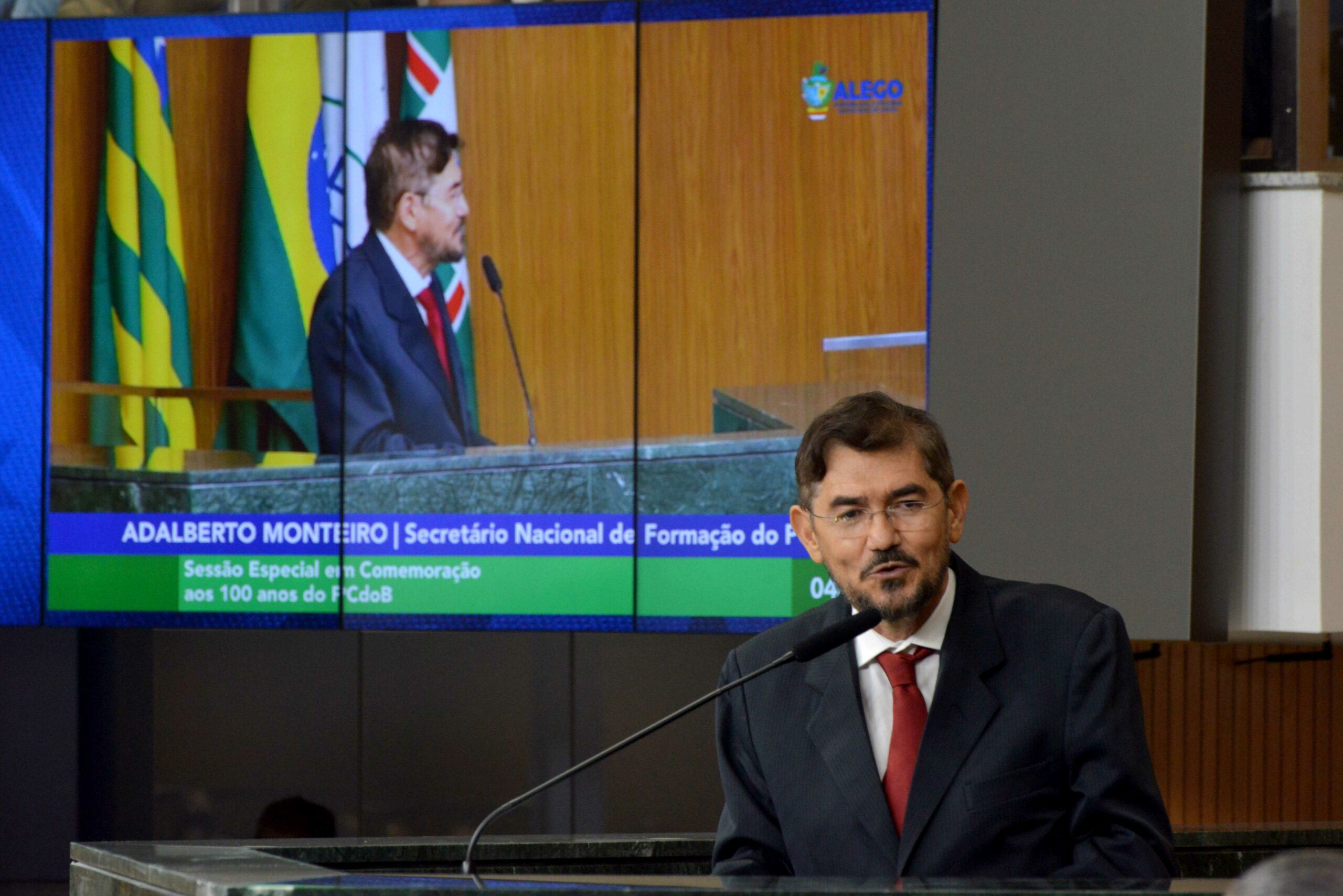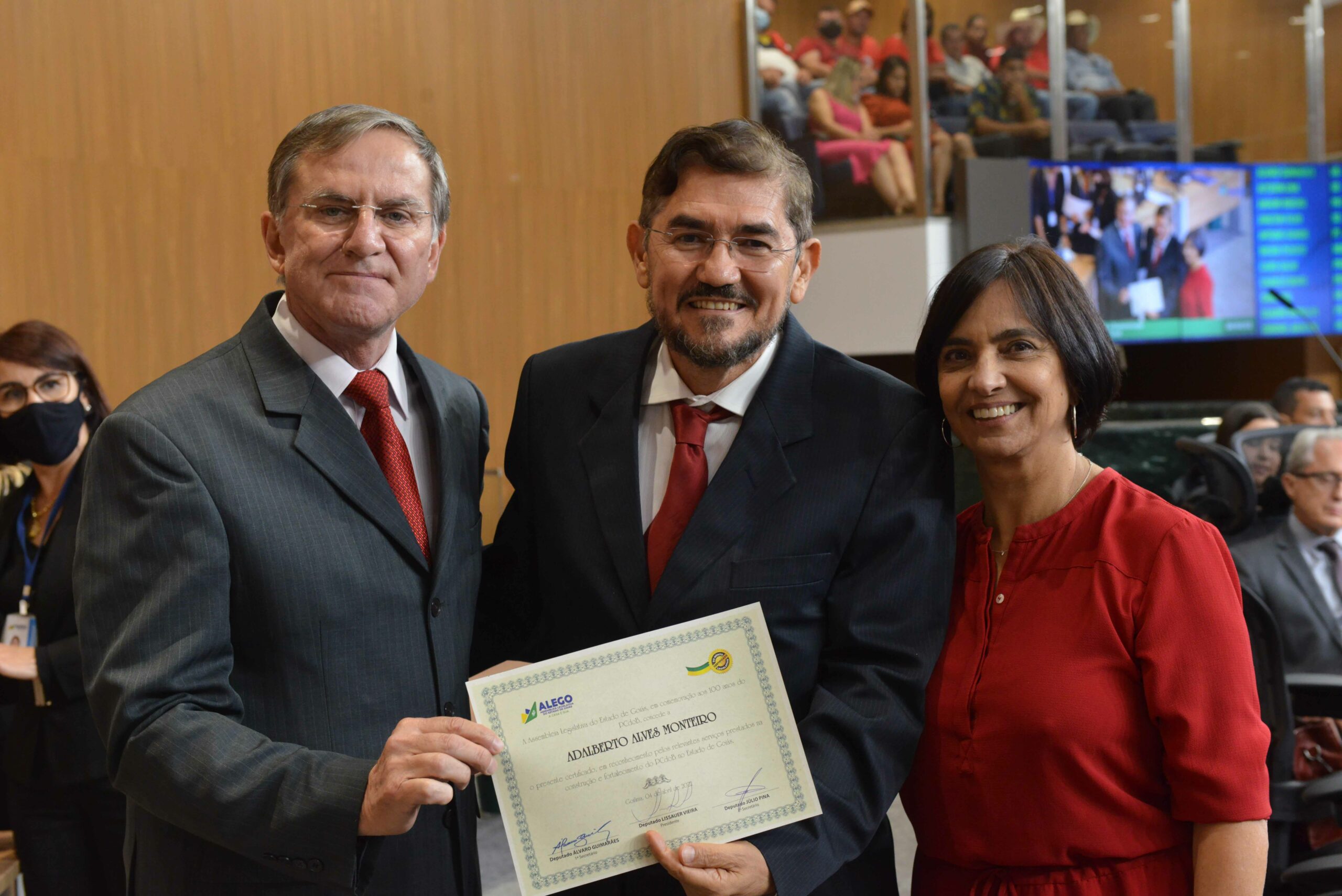 A Assembleia Legislativa do Estado de Goiás (Alego) promoveu, na noite dessa segunda-feira (4) sessão solene em comemoração aos 100 anos do Partido Comunista do Brasil (PCdoB), no plenário Iris Rezende, do Palácio Maguito Vilela. Realizado por requerimento do deputado Henrique Arantes (MDB), o evento contou com a participação da presidente estadual do PCdoB, ex-deputada Isaura Lemos, além de dirigentes e militantes do partido, do deputado Antônio Gomide (PT) e de outros políticos e autoridades. O evento também homenageou lideranças, amigos e simpatizantes da sigla com a entrega do Certificado do Mérito Legislativo.