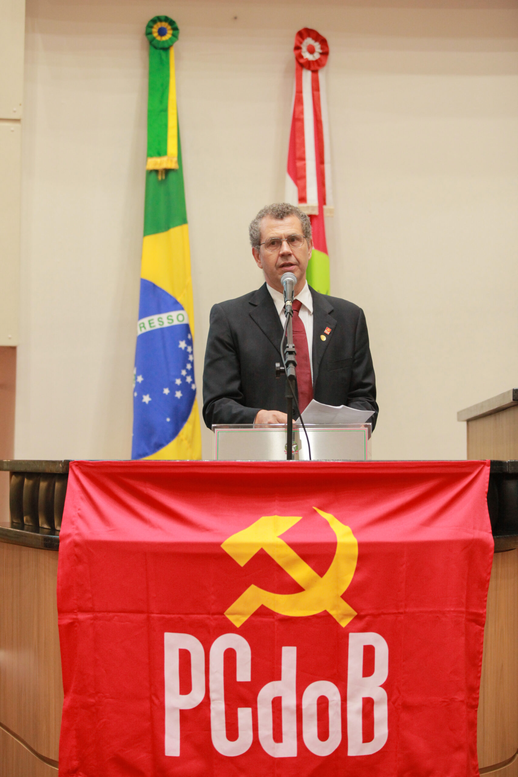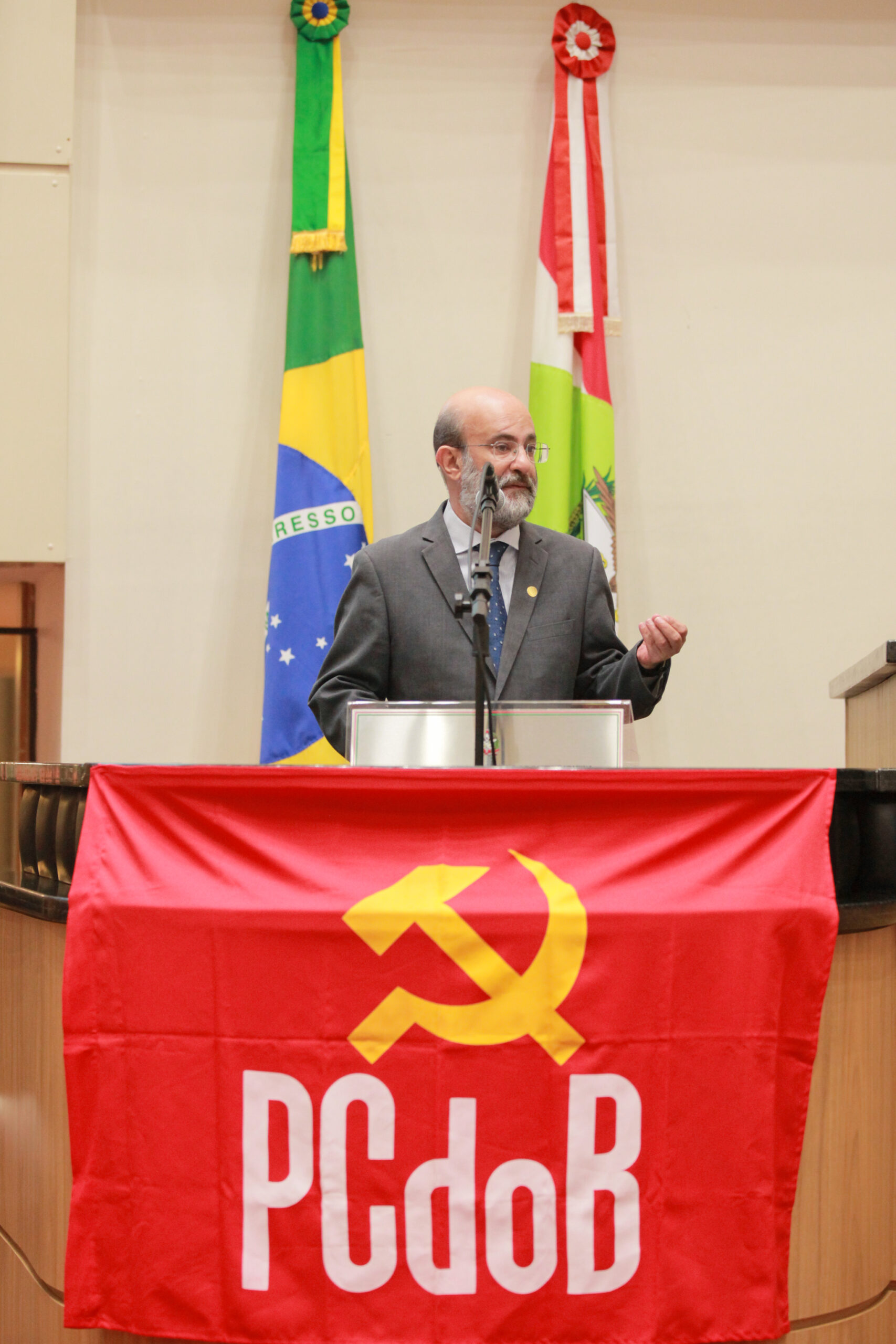 O dirigente, que por 20 anos comandou o partido no estado e atualmente integra a direção estadual da agremiação, observou que apesar dos seus 100 anos de história, o Partido Comunista do Brasil passou 60 anos na clandestinidade em razão das perseguições sofridas nos períodos do Estado Novo e da ditadura militar. Ele ressaltou, entretanto, que nem isso impediu que seus integrantes mantivessem a atuação junto à sociedade. “O PCdoB é um partido que tem uma história muito rica, com muitos mártires que tombaram na luta pela democracia no nosso país, em defesa dos trabalhadores. Então eu agradeço a homenagem que a Assembleia Legislativa de Santa Catarina presta ao Partido Comunista do Brasil.”