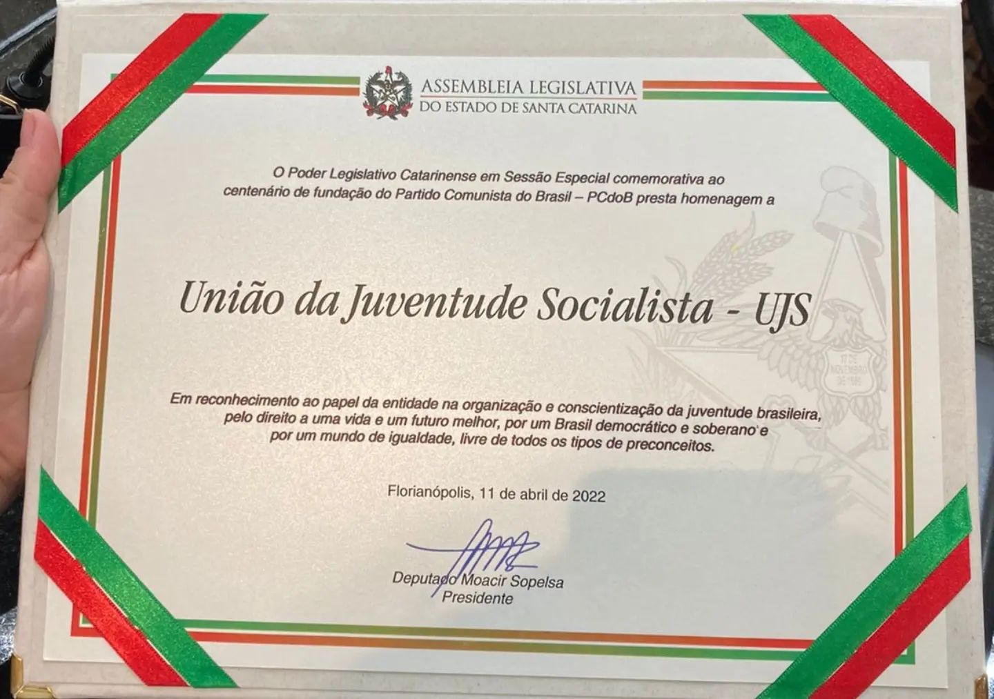 A Assembleia Legislativa de Santa Catarina promoveu na noite desta segunda-feira (11), uma sessão especial para homenagear a passagem dos 100 anos de fundação do Partido Comunista do Brasil (PCdoB). Na ocasião também foram destacadas as personalidades e instituições que se destacaram no desenvolvimento do partido em Santa Catarina e na luta pela democracia no país.