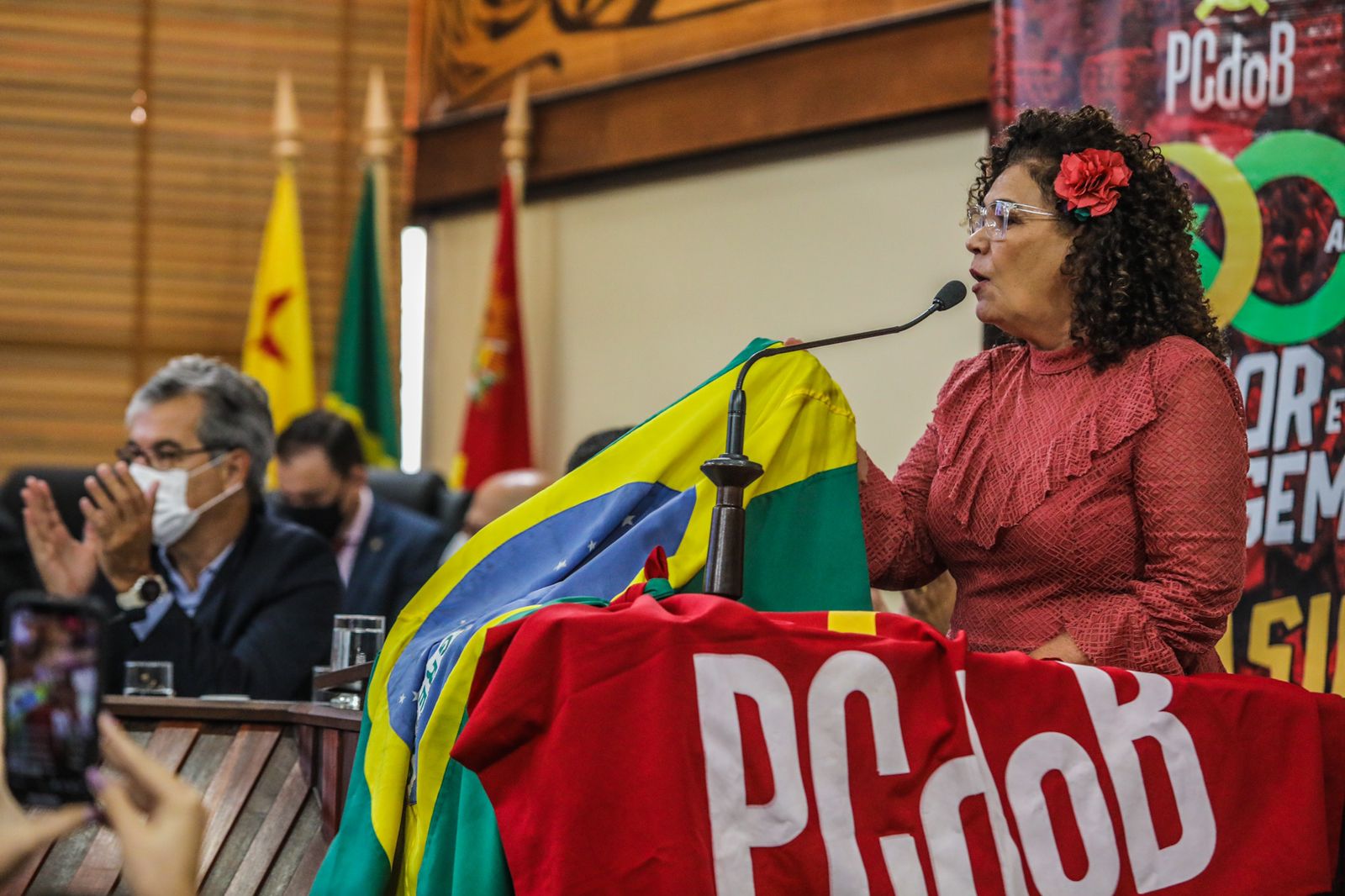 Em seu discurso, a deputada federal Perpétua Almeida relembrou as pessoas que já faleceram e que fizeram história no partido. “Para mim, falar de amor é falar de alguém que não está aqui conosco, mas que ajudou a fundar esse partido, que criou muitos militantes e que nos ensinou muito. E é sobre ela e sobre todos que perdemos mais recentemente, que eu quero fazer essa homenagem nesses cem anos, e dizer para todos os camaradas, convidados e presentes neste momento: Rita Batista presente, Sérgio Tabuada presente, e muitos outros que partiram, mas continuam tão presentes nas nossas vidas e nas nossas lutas, Presente! ”, disse.