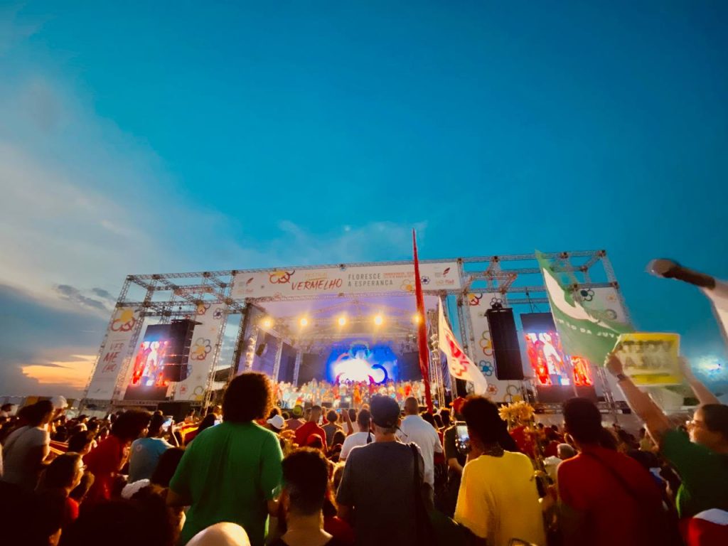 O Festival Vermelho “Florescer a Esperança”, coordenado pela competente deputada Jandira Feghali, trouxe ao palco do Caminho Niemeyer shows inesquecíveis, como os de Zélia Duncan, B. Negão e Francisco El Hombre, que agitaram a primeira noite. Zélia, com sua poderosa voz grave, encantou a plateia com suas músicas “Catedral”, “Alma”, “Enquanto durmo”, dentre tantas outras, permeadas por falas em defesa da democracia, a favor do feminismo e contra o fascismo, enquanto, nos intervalos, gritávamos “Fora Bolsonaro!”