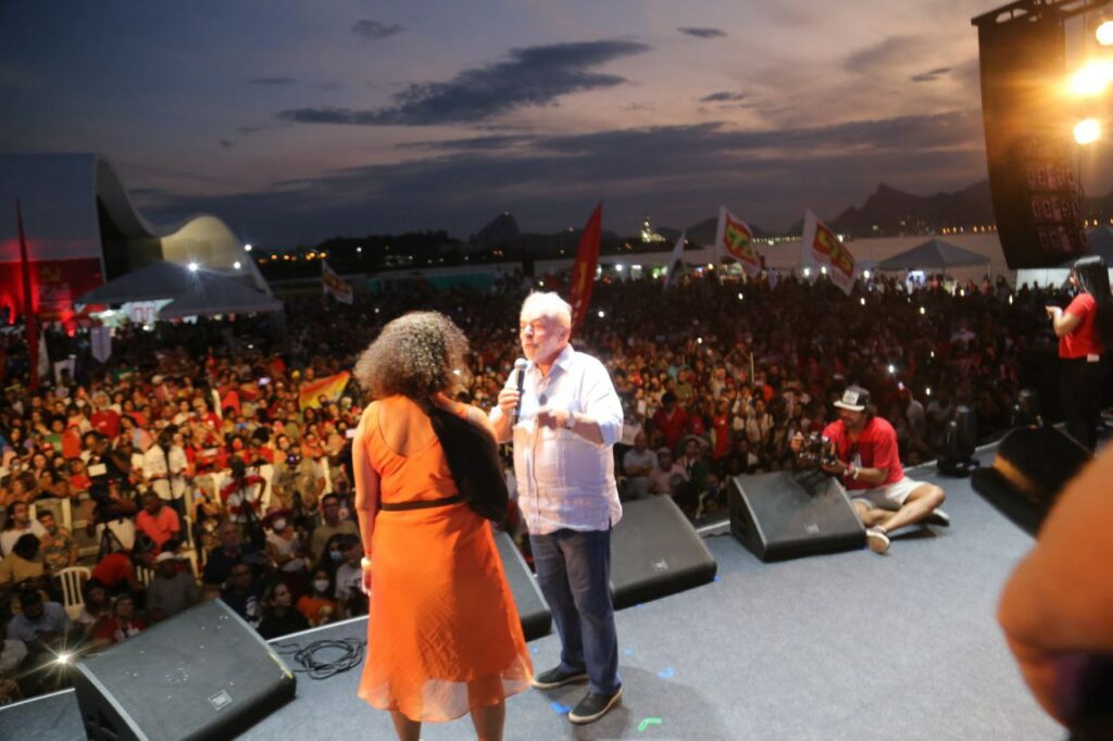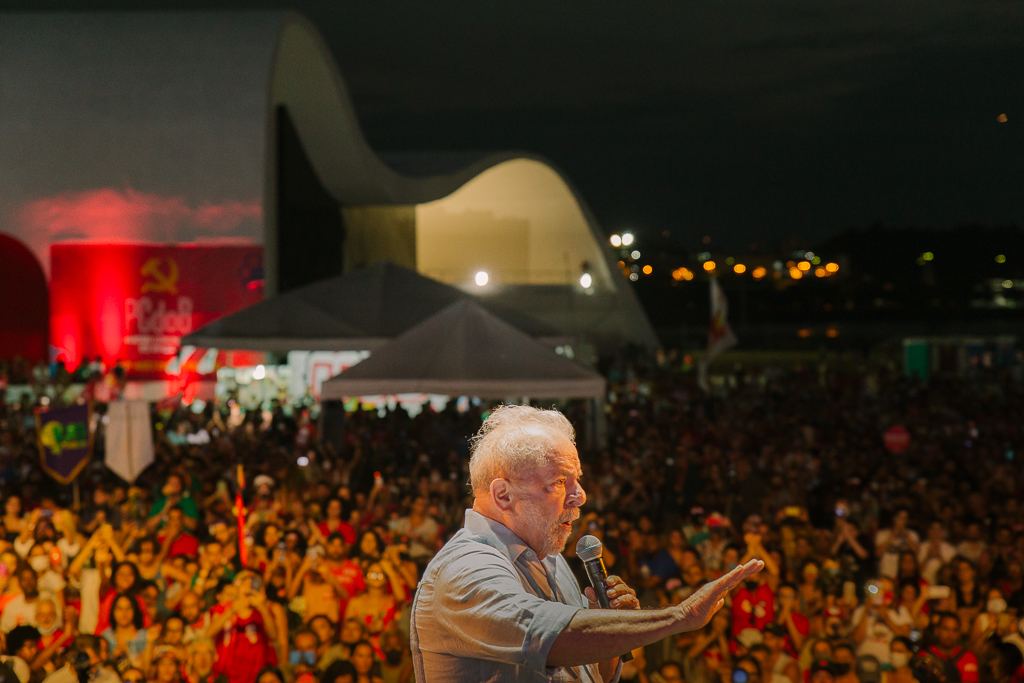 Ao lado de dirigentes e parlamentares comunistas, autoridades políticas, representantes de outros partidos e lideranças dos movimentos sociais, Lula participou do Ato Político Frente Ampla para Florescer a Esperança, no Caminho Niemeyer, em Niterói (RJ).