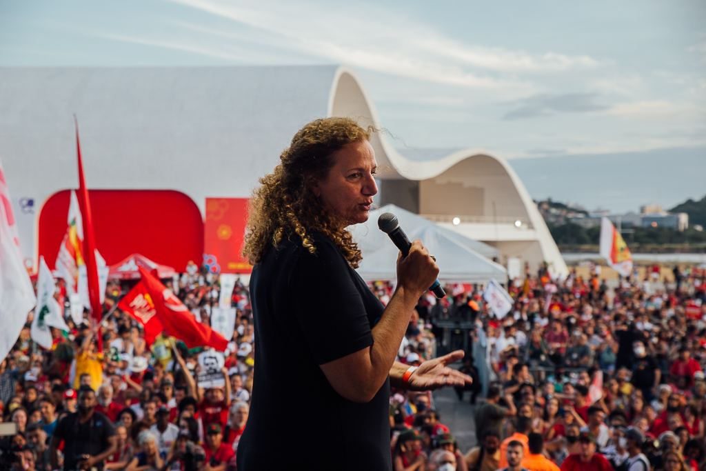 Conforme a dirigente, a federação partidária viabilizada entre PT, PCdoB e PV foi um passo importante para reverter a “terra atrasada” que o Brasil se tornou, “com este governo de destruição”. Luciana defendeu “uma agenda” de soberania nacional, retomada da industrialização e combate às desigualdades. “Você, Lula, é o homem certo, na hora certa, para garantir essa agenda”, afirmou. “Mas precisamos de uma frente ampla para derrotar o neofascismo e o retrocesso do Brasil.”