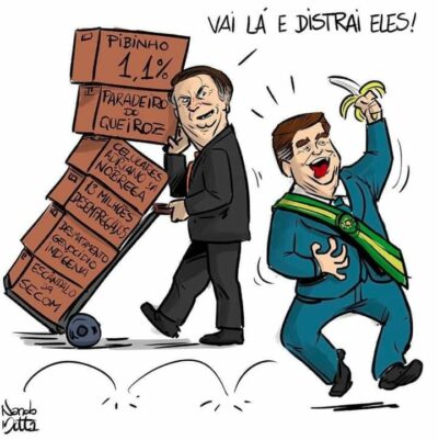 O “palhaço” asqueroso e venal, recém-contratado pela TV Record do “bispo” Edir Macedo, chegou a oferecer bananas aos jornalistas. Já as milícias bolsonaristas, que sempre ocupam o cercadinho diante do Palácio da Alvorada, também fizeram provocações, inclusive com piadas machistas contra as jornalistas. Segundo relato do site UOL, “enquanto o humorista fazia troças com a imprensa, alguns apoiadores do presidente riam e proferiam palavras de cunho sexual para as repórteres”.
