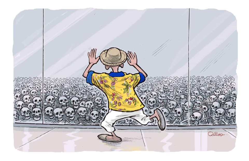 Para ilustrar a matéria sobre a internação, a Folha postou uma foto do bolsonarista Luciano Hang liderando protesto diante da prefeitura de Pelotas (RS) contra um decreto que colocou a cidade em lockdown por causa da Covid-19. Agora, o “véio da Havan”, sua esposa e sua mãe idosa estão internados. A vida é cruel!