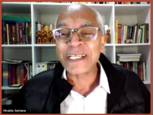 Ele destacou a alteração da correlação de forças do último período e classificou o atual momento como “entreatos”, quando saímos de defensiva para a tática mais assertiva num terreno sujeito a sobressaltos. Adalberto falou sobre o fortalecimento da oposição e da possibilidade de vitória em 2022 com a frente ampla. Ele também apontou a importância de a comunicação refletir também a atual luta pelas federações, pela democracia e pela pluralidade política, em risco com a cláusula de barreira.