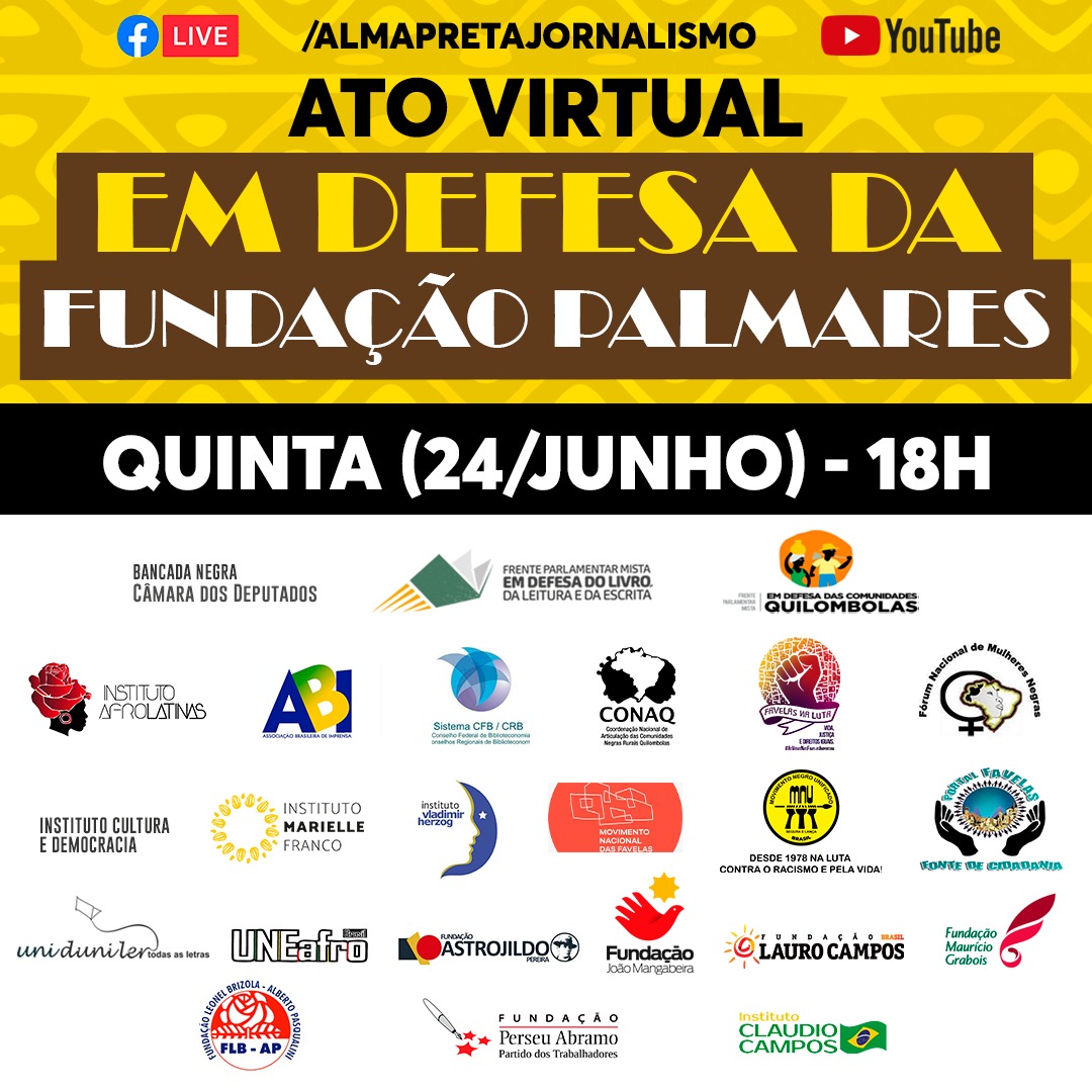 Ato virtual contra destruição da Fundação Palmares nesta quinta-feira