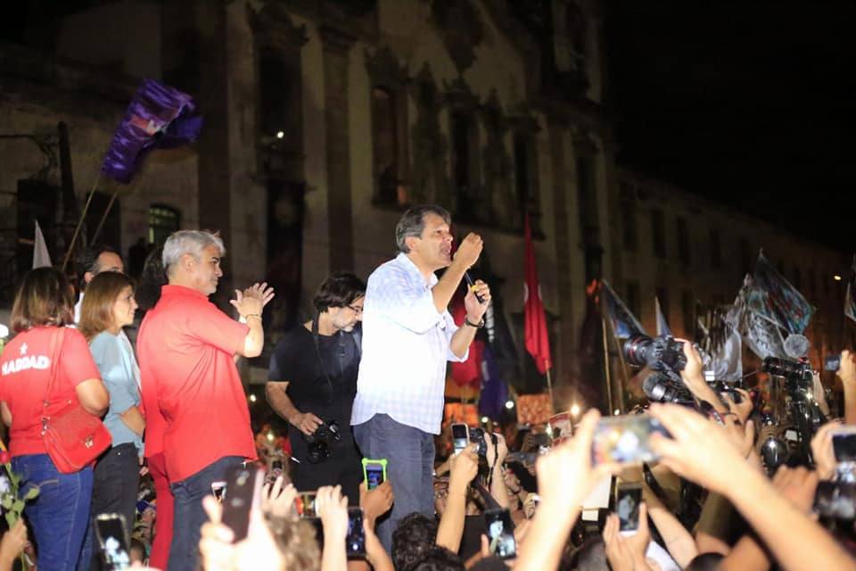 Na noite desta quinta-feira (25), milhares de pessoas se reuniram no pátio da Igreja Nossa Senhora do Carmo, em Recife-PE, para apoiar o candidato à Presidência da República, Fernando Haddad da Coligação O Brasil Feliz de Novo (PT/PCdoB/Pros).