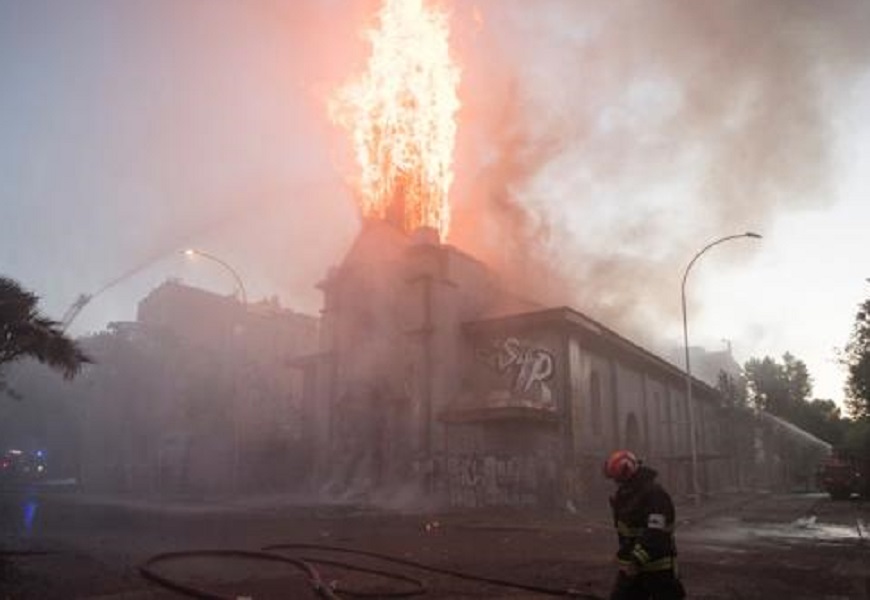 A marinha do Chile se dissociou inteiramente dos atentados. Depois da igreja San Francisco de Borja, os vândalos também atearam fogo em uma segunda igreja, a de Asunción.