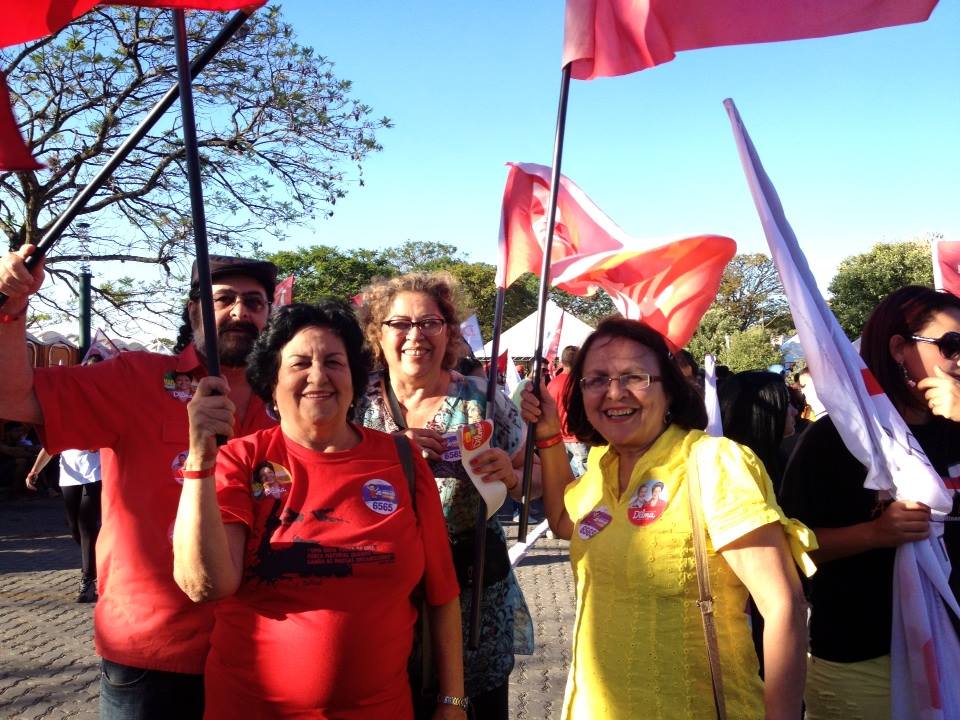 Acima registro de 14 de setembro de 2014 no Facebook de Jô Moraes: “Tarde alegre na vinda da Dilma na Pampulha com Dalva Stela, com Júlia Inez Aguilar e Wellington Teixeira Gomes”.