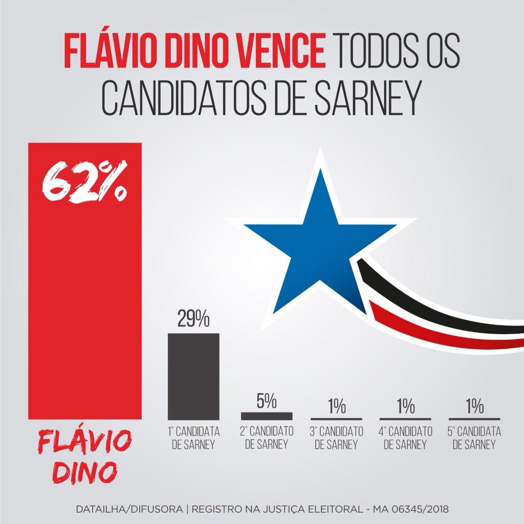 Segundo a pesquisa, a ex-governadora Roseana Sarney (MDB), adversária política de Flávio Dino não tem nem a metade das intenções de votos do governador comunista: 29,15%. Com menos de 5% das intenções de votos, aparece em terceiro lugar o deputado estadual Eduardo Braide (PMN). Empatados tecnicamente com cerca de 1% dos votos aparecem o ex-secretário Ricardo Murad ( PRP), o senador Roberto Rocha (PSDB) e a ex-prefeita de Lago da Pedra, Maura Jorge (PTN).