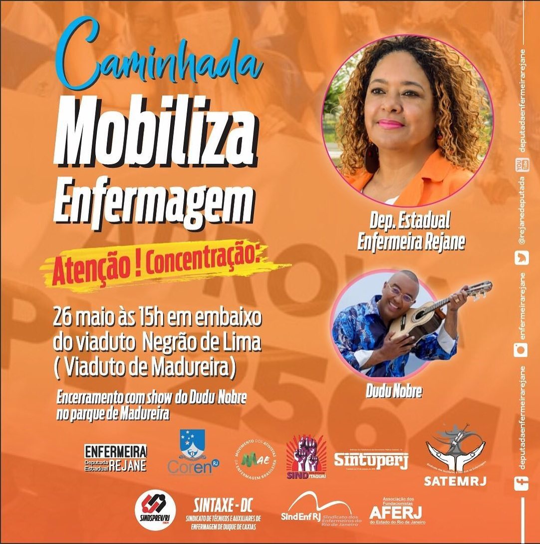 Nesta quinta-feira (26), às 15 horas, acontece a caminhada “Mobiliza Enfermagem”, que levará trabalhadores e trabalhadoras da categoria às ruas em defesa da sanção do PL 2564/20, que institui o Piso Nacional da Enfermagem. A iniciativa é da deputada estadual Enfermeira Rejane, (PCdoB-RJ) e conta com participação de diversas entidades de classe e líderes políticos, pela aprovação da PEC.