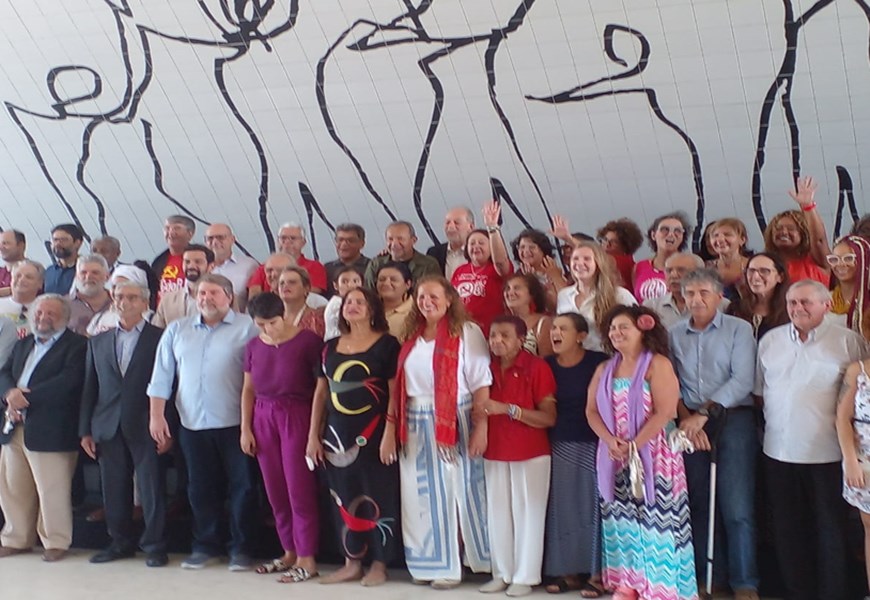 Seguindo em direção à exposição Audiovisual da História do PCdoB, no Auditório Niemeyer, estandartes e bandeiras, aqueles homens e mulheres…, dirigentes velhos, moços, não tão velhos e não tão moços, jovens… foram abraçados pelas centenas de pessoas que já se espalhavam pelo local.
