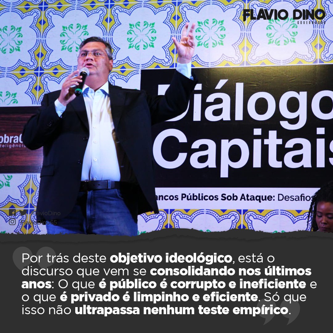 Flávio Dino ironizou: “O que é público é corrupto e ineficiente, aquilo que é privado é limpinho e eficiente, só que isso não ultrapassa nenhum teste empírico. Qual foi o grande esquema de corrupção no Brasil desvendado nas últimas décadas que não teve a participação privada, questionou. “Nenhum!”, explicou o governador.