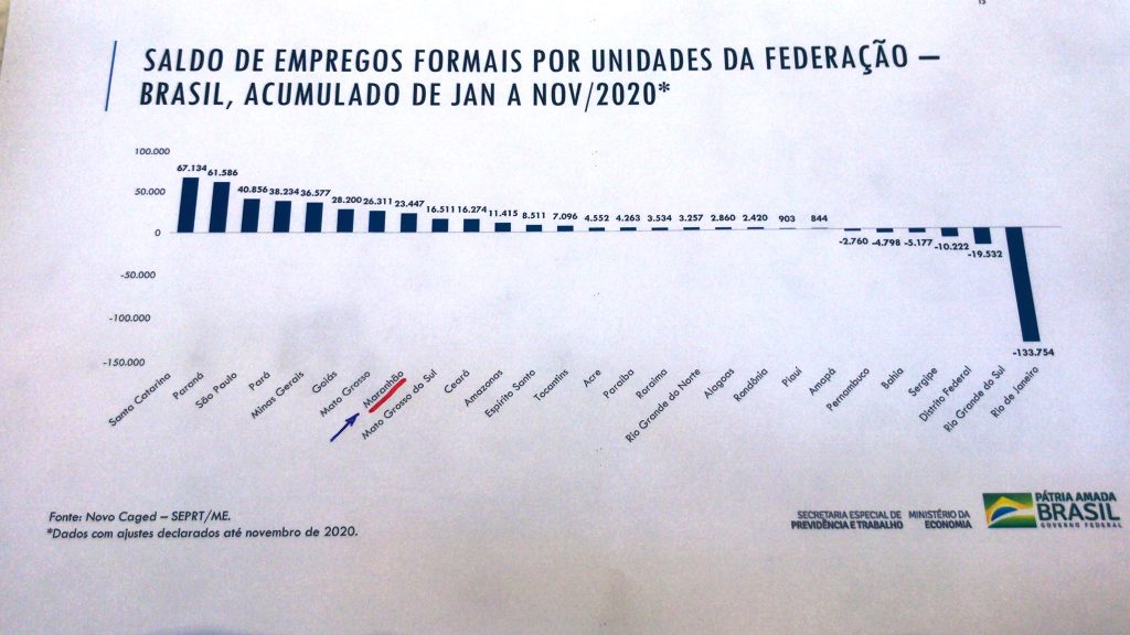 Com a divulgação hoje do CAGED pelo Ministério da Economia, Maranhão continua em 1º lugar no Nordeste no saldo positivo de empregos em 2020 (período de janeiro a novembro). Meus cumprimentos à classe trabalhadora e aos empresários. pic.twitter.com/EUjdMymxvG