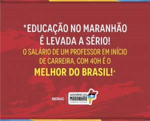 Com o reajuste, o governador beneficia 31 mil professores maranhenses e eles passam a ter o melhor salário do Brasil em início de carreira para jornada de 40 horas.