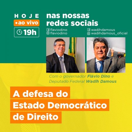 O governador do Maranhão, Flávio Dino (PCdoB) participará na noite desta quarta-feira (26) de uma transmissão ao vivo pela internet para falar sobre “A defesa do Estado de Direito” e os desafios da Esquerda diante do bolsonarismo. A “live” começa às 19h e poderá ser acessada por meio das redes sociais.