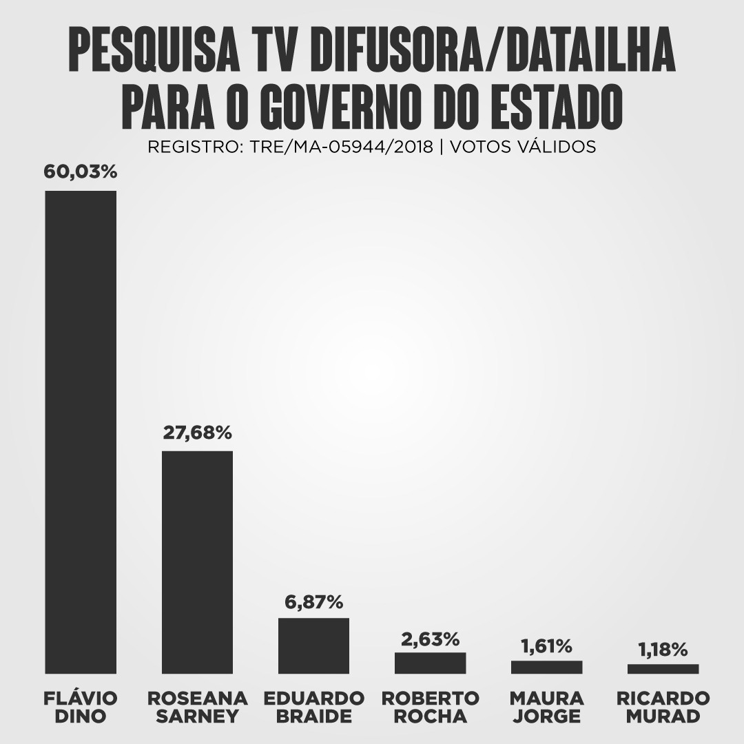 É a segunda pesquisa Difusora/DataIlha divulgada este ano. A anterior foi em fevereiro e também apontava vitória de Flávio Dino no primeiro turno.