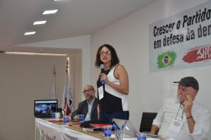 Na conferência de abertura do seminário “Os desafios da ação política e da estruturação partidária”, realizado pelo PCdoB, em Brasília, no auditório do Sindicato dos Professores (Sinpro-DF), Luciana Santos fez uma análise conjuntural do atual momento político brasileiro.