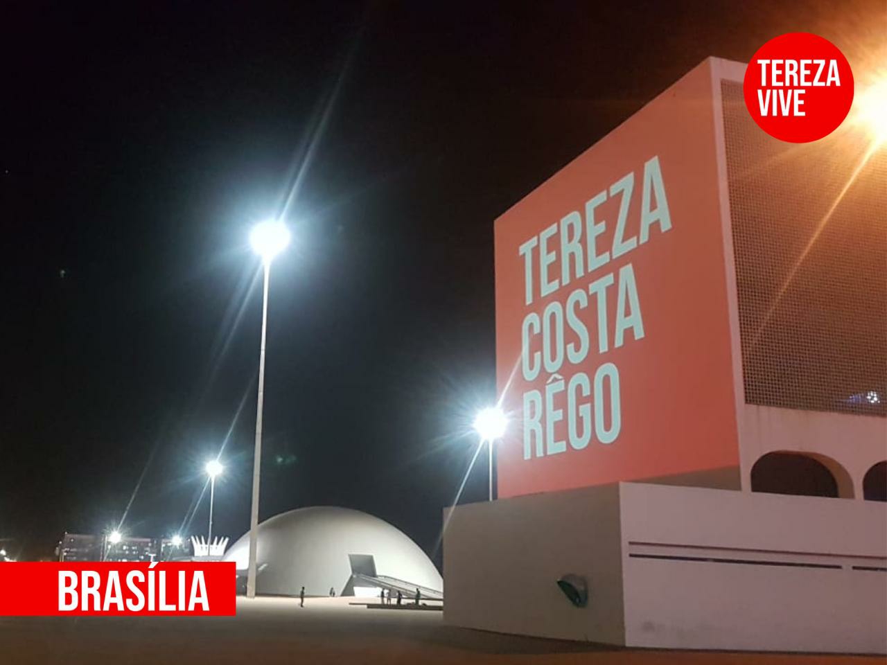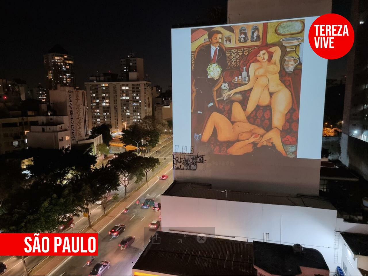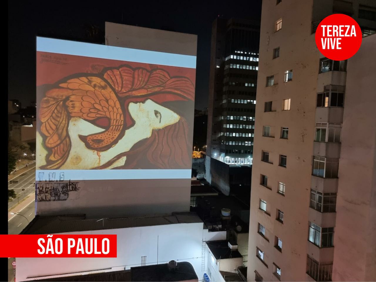 Para homenagear Tereza Costa Rêgo e divulgar a beleza de sua arte, foi realizada nesta segunda-feira (26) uma uma ação de ocupação visual intitulada “Tereza Vive”, que projetou obras e textos da artista plástica em prédios de São Paulo, Rio de Janeiro, Belo Horizonte, Brasília e Olinda.