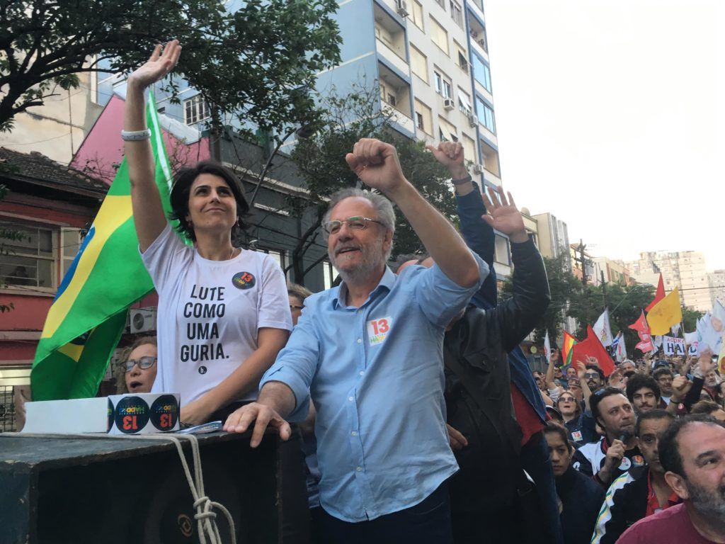 Manuela e Rossetto durante a campanha eleitoral de 2018, quando ela foi candidata a vice-presidenta na chapa de Haddad (PT)
