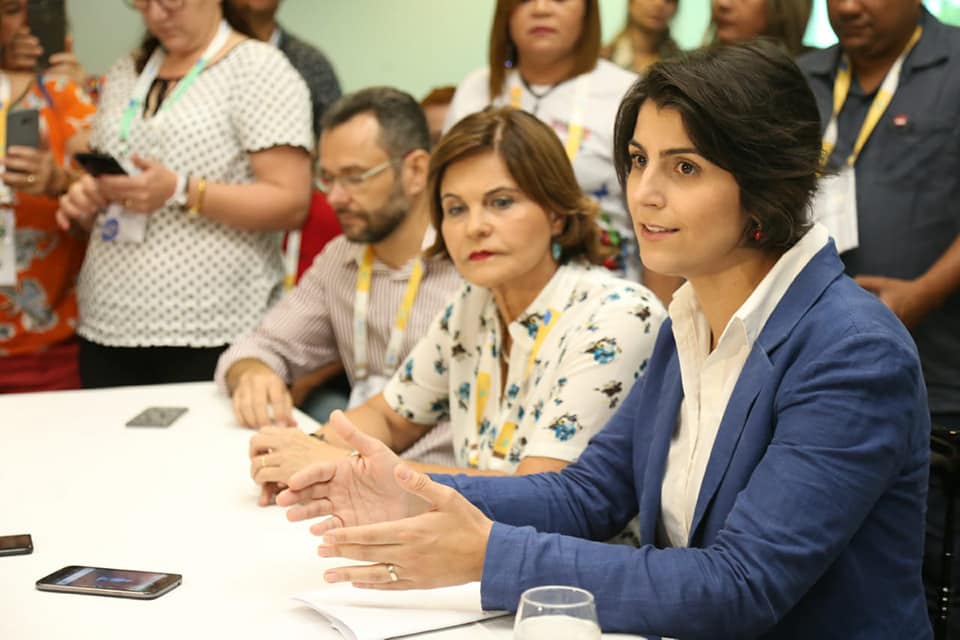Manuela lembrou da sua trajetória como dirigente estudantil na UJS e na UNE, de onde foi disputar e ser eleita deputada federal pelo PCdoB do Rio Grane do Sul, sendo a mais jovem e mais votada naquele ano.