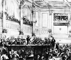 Neste período, merece destaque especial a atuação dos dois únicos deputados marxistas do parlamento alemão. Eles, primeiramente, denunciaram a agressão militar perpetrada por Napoleão III contra a Alemanha e, quando o conflito mudou de curso e transformou-se numa guerra de conquista prussiana, eles não temeram acusar os objetivos de rapina de seu próprio governo e defender uma paz sem anexações com a França. Por seu ato corajoso, Liebknecht e Bebel foram presos e acusados de alta-traição. Marx e Engels escreveram uma carta na qual diziam: “Nós todos ficamos muito satisfeitos com a manifestação corajosa dos dois no Parlamento Imperial, em circunstâncias em que, de fato, não era fácil mostrar franca e determinantemente as nossas opiniões.”. Nascia, assim, um novo tipo de parlamentar, que colocava os interesses do proletariado mundial acima dos interesses de sua pátria capitalista e com aspirações imperialistas.