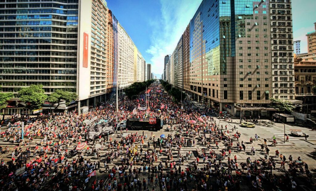 Em suas redes sociais, a deputada postou: “Assim termina mais um ato #forabolsonaro no Rio de Janeiro, a [Avenida] Presidente Vargas continua completamente tomada, foram milhares de pessoas e cada dia será mais, BOLSONARO VAI CAIR . — em Igreja de Nossa Senhora da Candelária