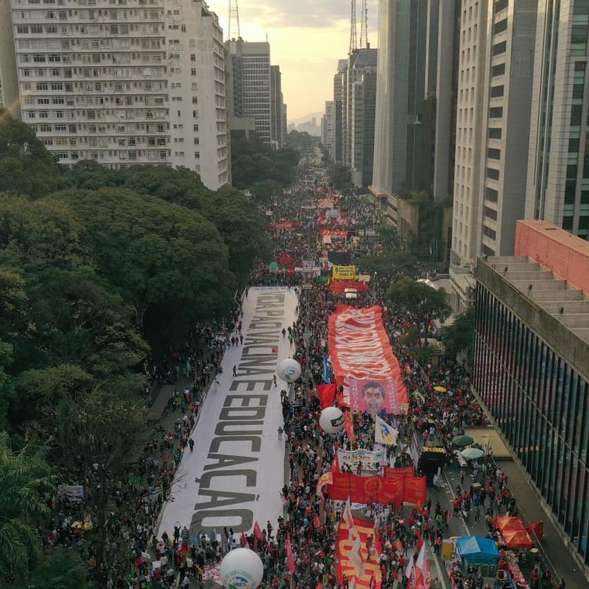 No vídeo é possível ter uma pequena dimensão da quantidade de pessoas que compareceram na Paulista contra o governo Bolsonaro neste sábado (3).
