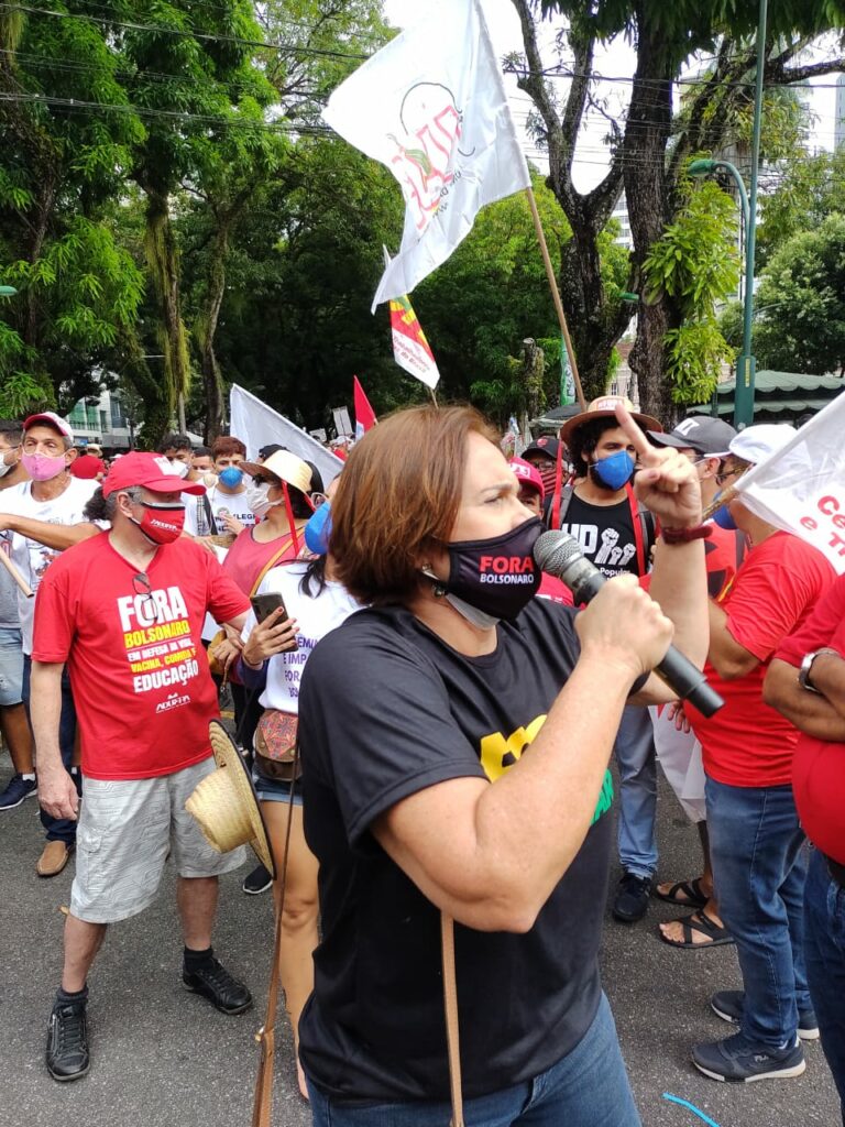 A secretária estadual de Organização do PCdoB, Teresinha Braga também esteve presente no ato em Fortaleza e transmitiu um trecho da manifestação da Rua da Abolição. “Estamos aqui para dizer fora, Bolsonaro. Nosso país vive uma crise sanitário, mais de 522 mil mortos. Não é possível continuar dessa forma”, considerou.
