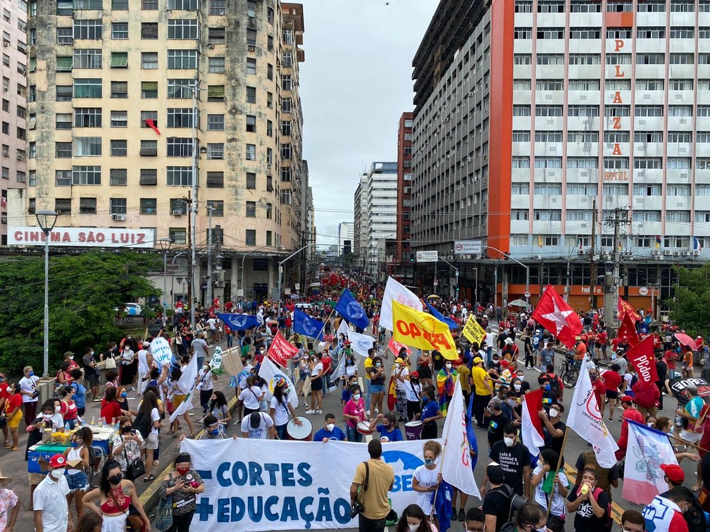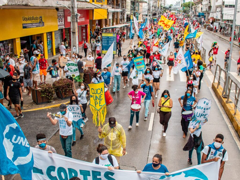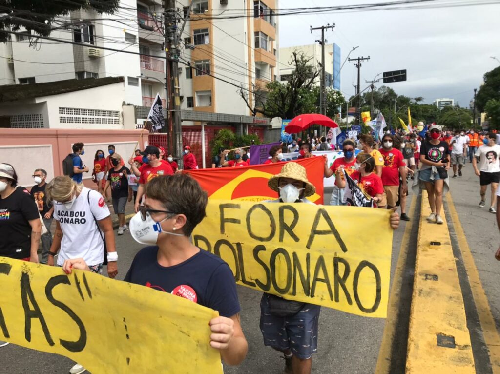No trajeto, na Avenida Conde da Boa Vista foi possível ver a dimensão da passeata. Com o lema “máscara no rosto, álcool nas mãos e disposição de luta no peito”, entidades sociais e partidos, como o PCdoB estiveram presentes em um protesto pacífico e ordeiro.