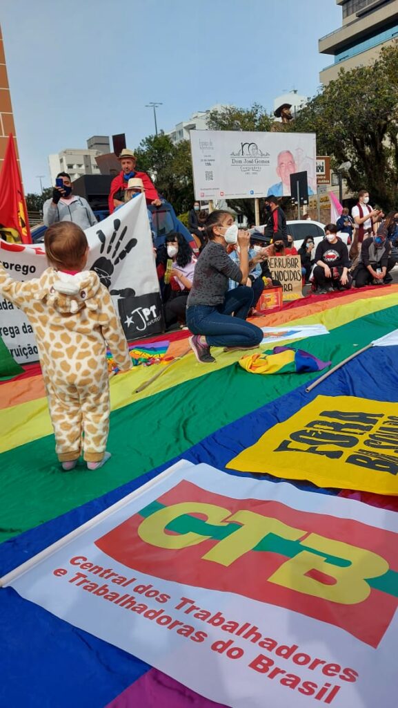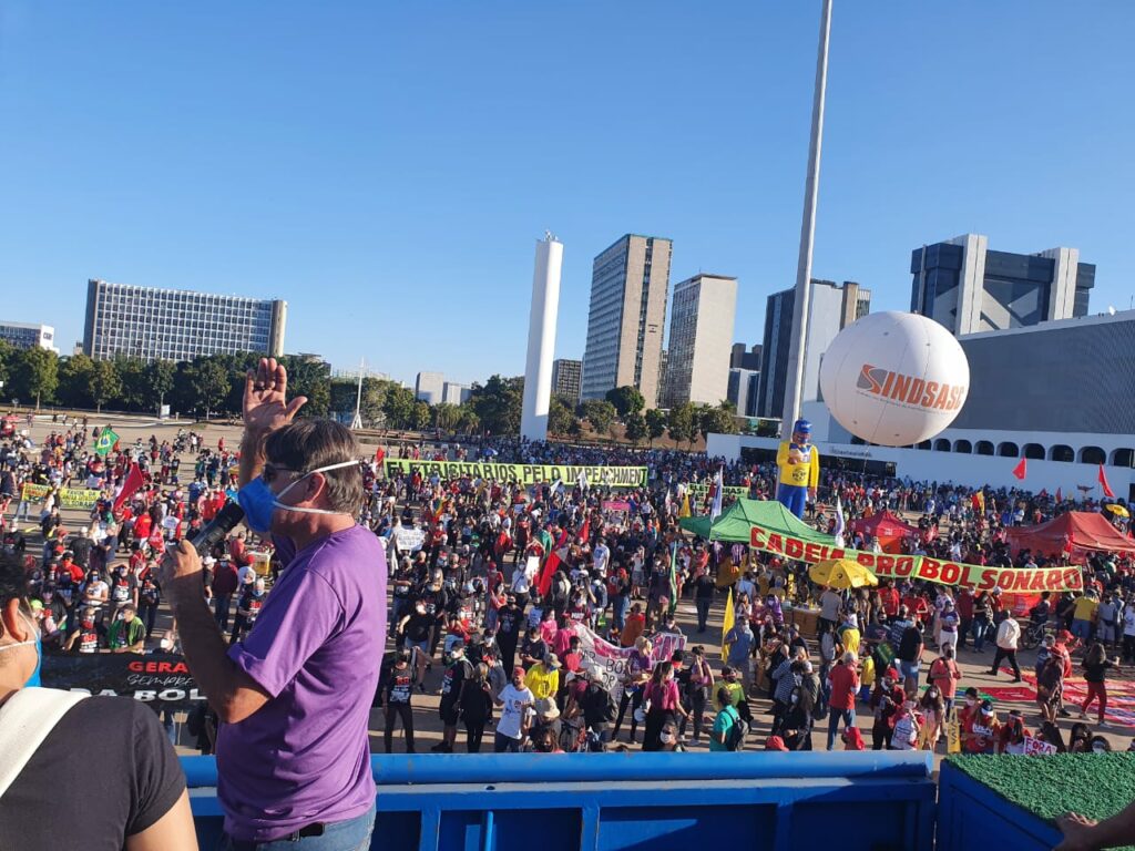 A liderança saudou os manifestantes em luta. “Veja a nossa juventude com sua convicção, veja a geração de 1968 com a vida dedicada à justiça e à liberdade. E nós todos temos um compromisso, sermos a memória dos que se foram, são 520 mil brasileiros e brasileiras, são pais, são mães, são avós, são filhos. Nós contaremos essa história derrotando o genocida, derrotando o bandido, derrotando aquele que trocou a vida dos nossos amores por 1 dólar”.