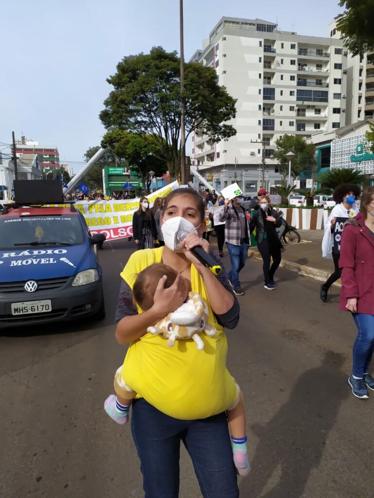 A manifestação uniu todas as gerações. O ato foi unificado e ocorreu pacificamente, com cuidados sanitários, inclusive, distribuição de máscaras e álcool em gel.