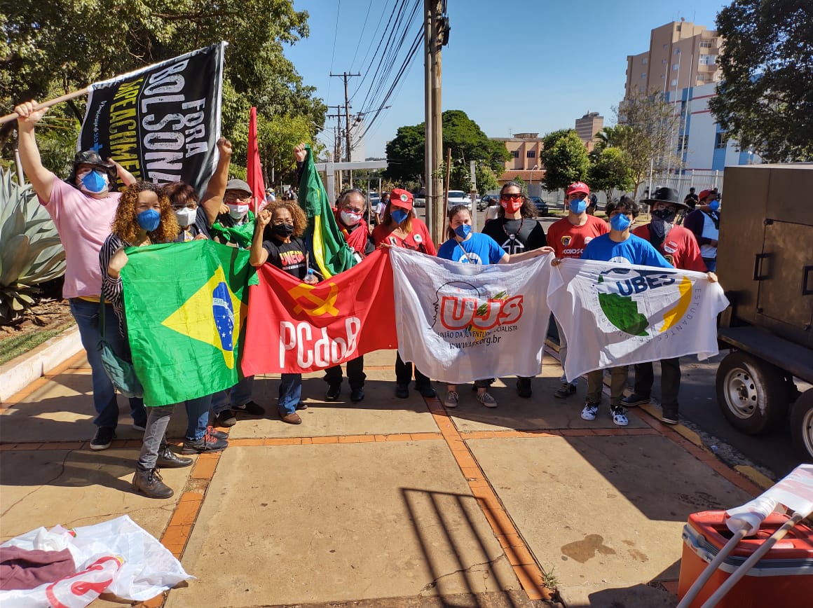16 cidades goianas marcaram atos ao longo do dia nacional de luta neste sábado (3). Na capital, Goiânia, a concentração começou cedo, na Praça Cívica. Os manifestantes saíram em passeata pelas ruas do centro da cidade, pedindo pelo impeachment de Bolsonaro. A dispersão ocorreu por volta de 12 horas, na Praça do Trabalhador: