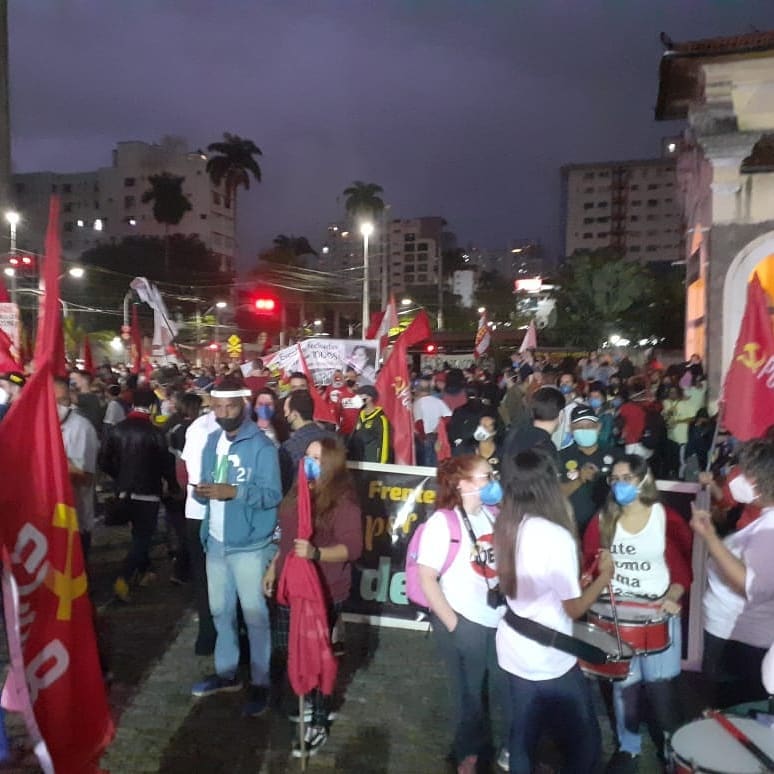 Em Santos, litoral paulista, o ato “Fora Bolsonaro Corrupto!” teve concentração na Estação da Cidadania, às 16h, e seguiu em passeata até a Praça das Bandeiras, no Gonzaga. O ato foi convocado por movimentos sociais e centrais sindicais e também contou com a presença de representantes do partido.