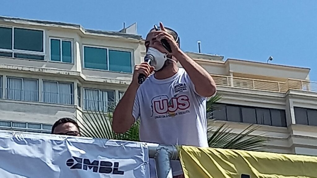 A militância do PCdoB carioca e de entidades sociais como a União Brasileira de Mulheres (UBM), União da Juventude Socialista (UJS), CTB, Unegro, entre outras, também participaram das manifestações neste domingo (12) em Copacabana . “Estamos na rua com único objetivo, derrotar e derrubar Bolsonaro!, disse o dirigente estadual do PCdoB, membro da executiva do PCdoB que falou no ato.