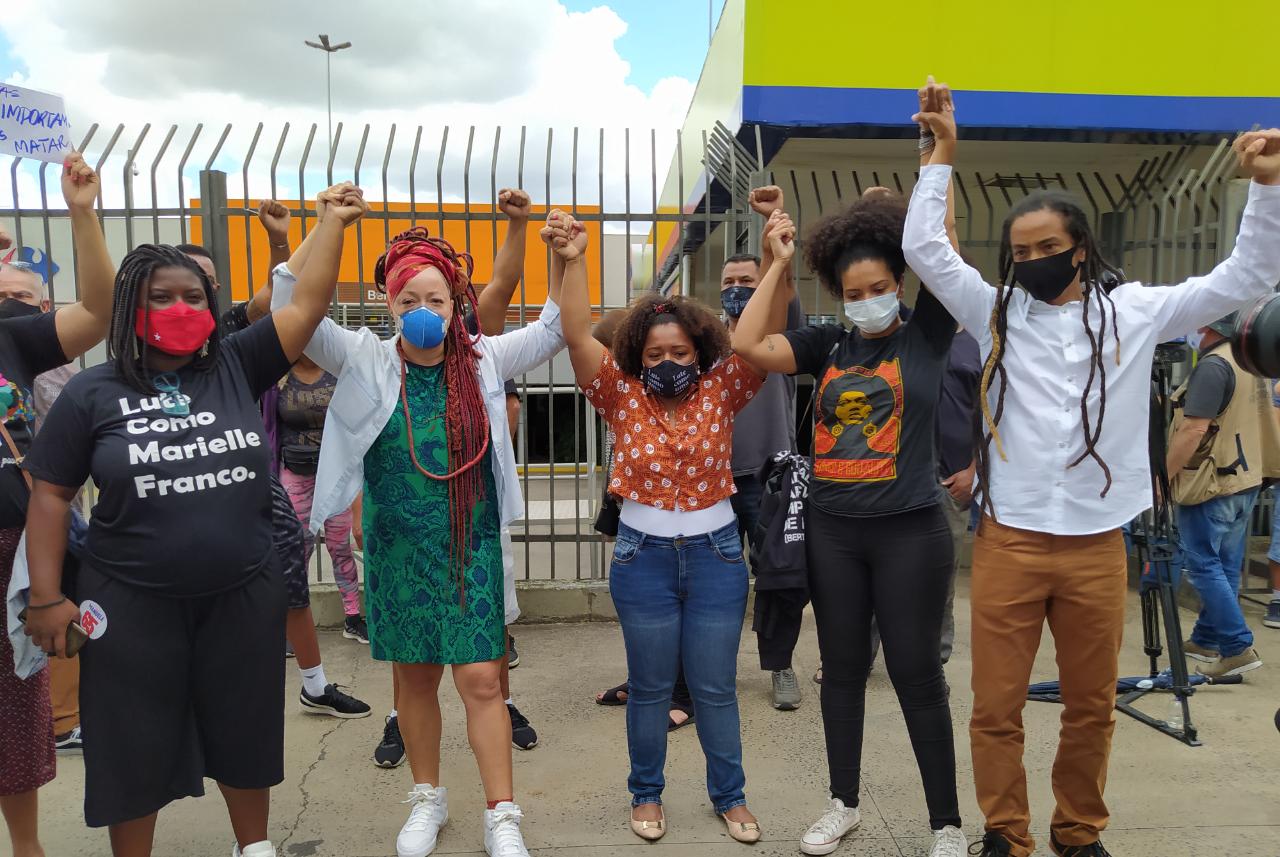 Nesta sexta-feira (20) Dia da Consciência Negra, as vereadoras e vereadores negros recém-eleitos Bruna Rodrigues e Daiana Santos (PCdoB), Karen Santos e Matheus Gomes (Psol) e Laura Sito (PT) protestaram pela manhã em frente ao Carrefour.