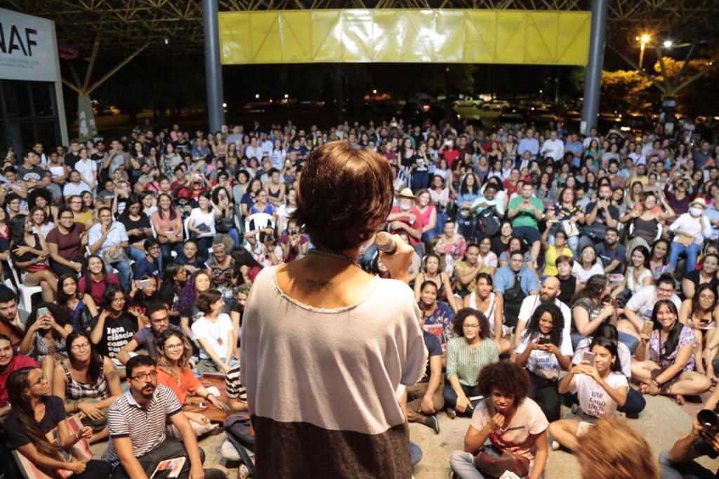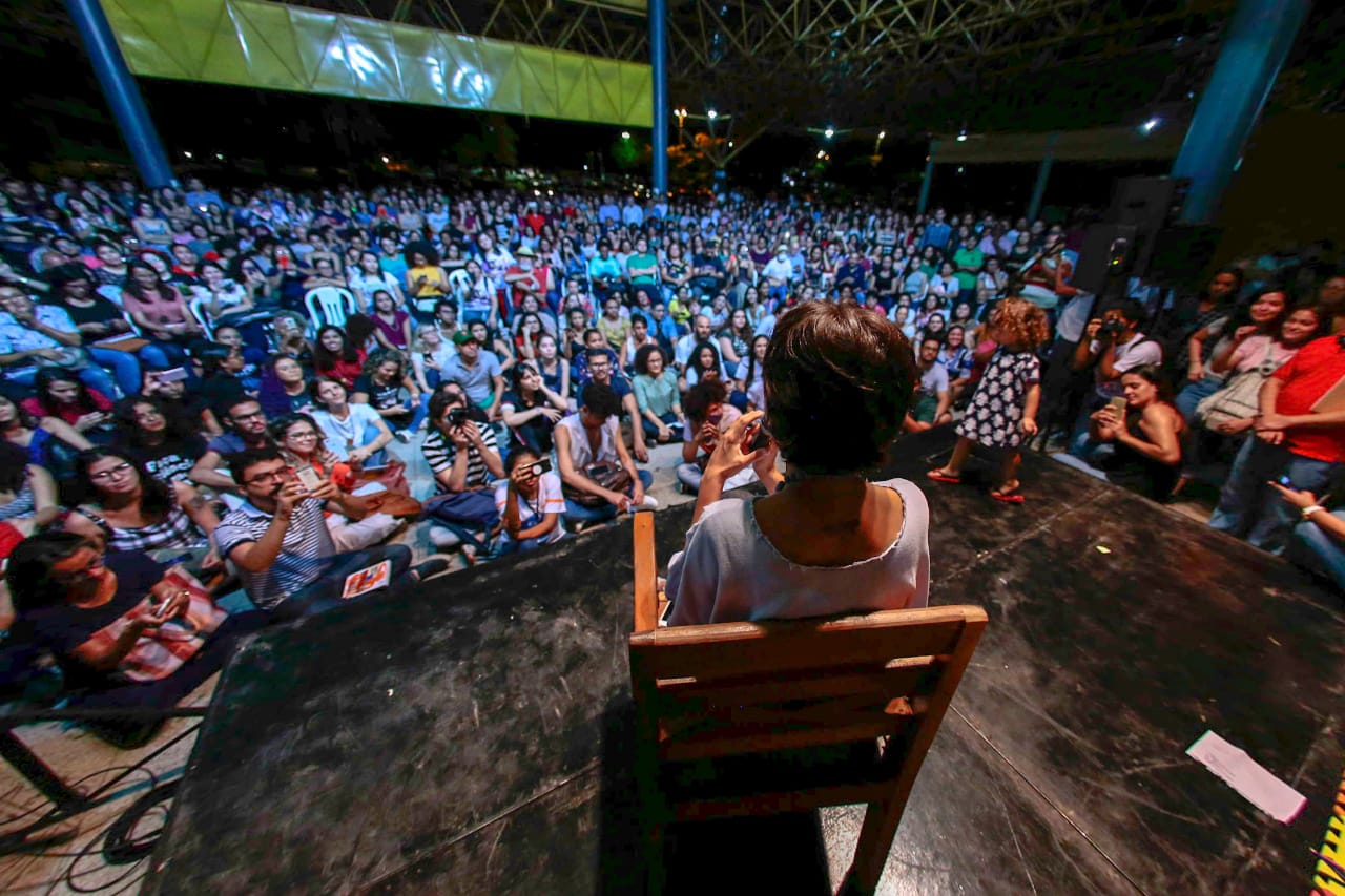 À noite, no Espaço Rosa dos Ventos, na Universidade Federal do Piauí, uma multidão de estudantes, professores militantes e dirigentes de partidos do campo democrático e de entidades do movimento social, receberam com entusiasmo e palavras de ordem nossa camarada Manuela d’Avila. A atividade na UFPI teve início com uma concorrida sessão de autógrafos, em seguida Manu movimentou a plateia ao tratar das fake news e de como a manipulação da informação interfere na vida e na opinião pública, inclusive interferindo em eleições em diversos países, como ocorreu no Brasil durante as eleições de 2018, quando Manuela d’Avila foi pré candidata à presidência da República e depois candidata à vice-presidente de Fernando Haddad, numa aliança com o Partido dos Trabalhadores.