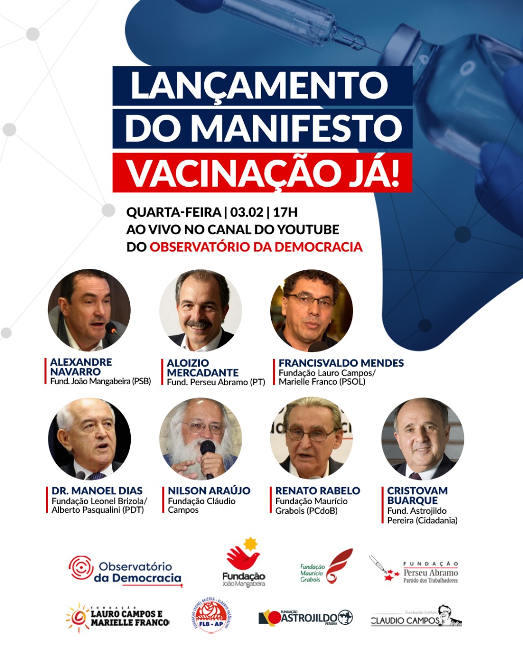 Lançamento do Manifesto Vacina Já! Em defesa da vida, da democracia e do emprego – AO VIVO no canal Observatório da Democracia no Youtube