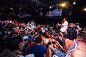 Na sequência, aconteceu uma homenagem à vereadora do PSOL, Marielle Franco, assassinada brutalmente nesse mês no Rio de Janeiro. A arquiteta Tayná de Paula falou em homenagem à Marielle e afirmou que: “Essa mulher provava viva e vai provar após a morte que nós não vamos voltar pra senzala, não vamos voltar pro armário e que as mulheres não vão voltar para a submissão (…) Não vamos permitir que a Marielle fique naquele caixão silenciada”.