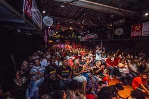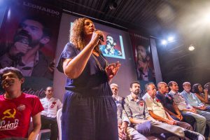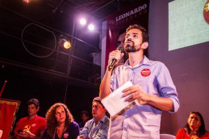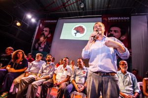 A militância cantou com entusiasmo: “Com Leonardo vai ter mudança, da unidade vai nascer a esperança”.