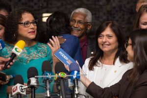 “Esta jovem mulher exercerá uma pré-candidatura a serviço de um projeto de mudança. Vivemos uma grave ruptura democrática que acentuou a crise de forma simultânea e multifacetada. Debateremos saídas para a retomada do crescimento, para o fortalecimento do Estado como indutor do desenvolvimento, para a consolidação da democracia. Manuela se apresenta contra essa agenda nefasta do desmonte trazida por Temer, a serviço de algo diferente que se coloque na condição de defender um novo projeto popular em 2018”, pontuou Luciana.