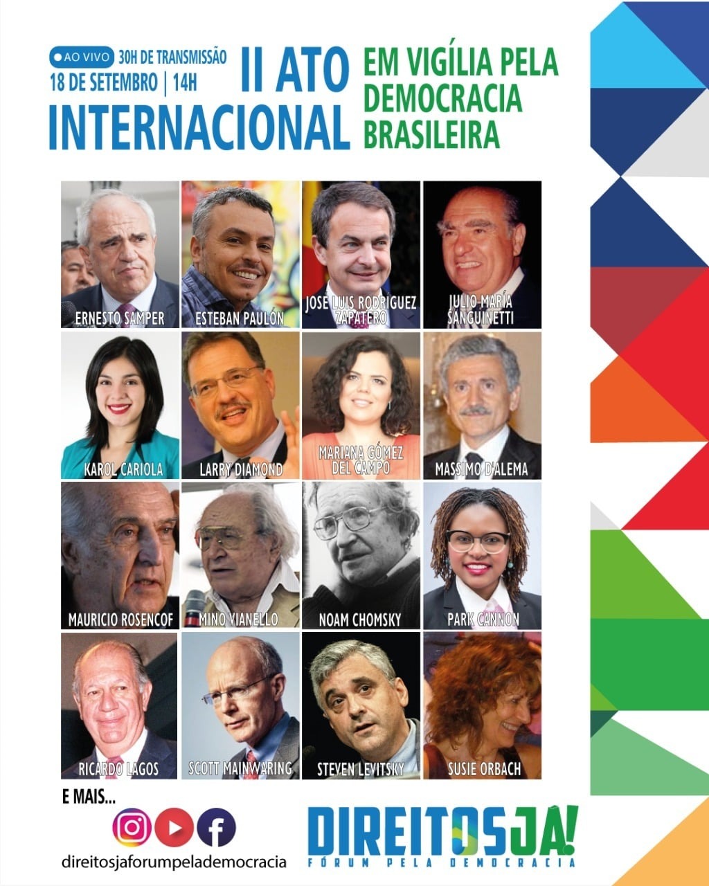 https://www.youtube.com/c/DireitosJáFórumPelaDemocracia https://www.facebook.com/direitosjaforumpelademocracia