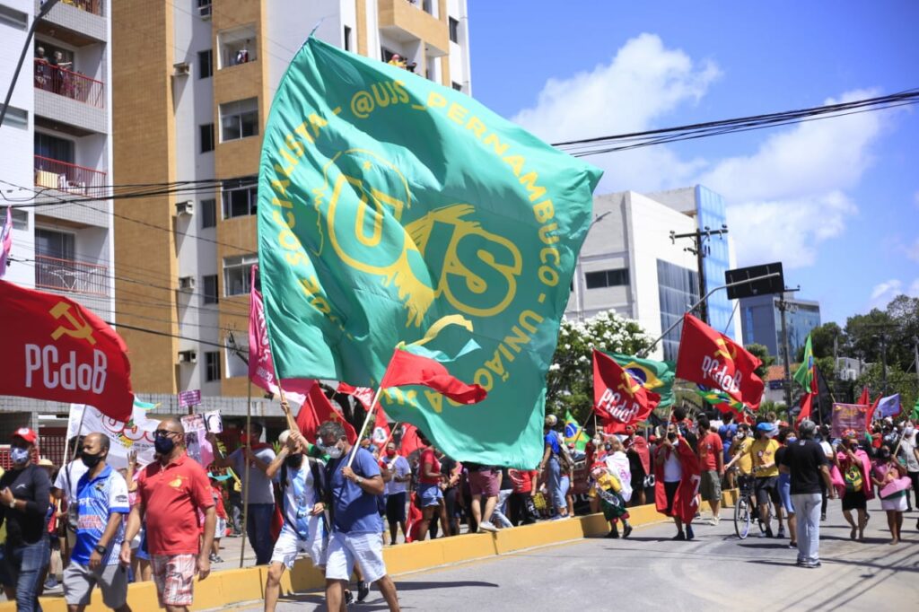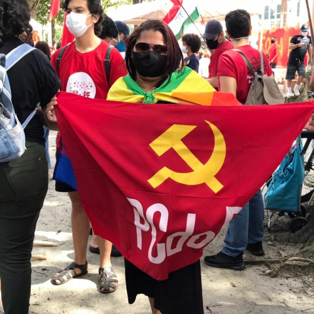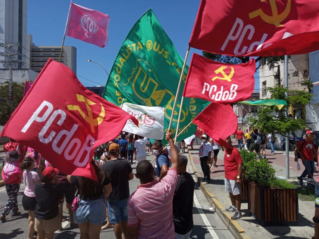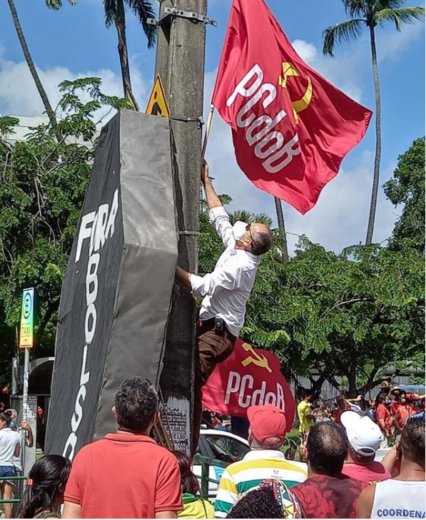 Na Praça do Derby, em Recife, o presidente estadual do PCdoB-PE, Marcelino Granja subiu no poste para hastear a bandeira do PCdoB no ponto mais alto do ato. A jornada do #24JForaBolsonaro acontece em várias cidades do estado.