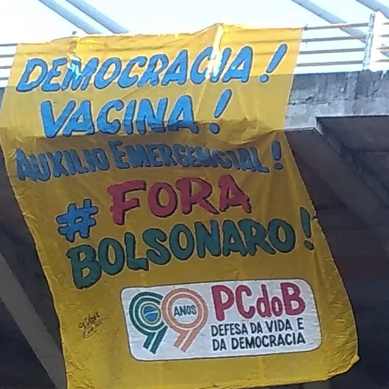 A capital, Teresina amanheceu neste sábado (24) já com bandeiras do PCdoB nos viadutos da principal avenida da cidade. “Democracia, vacina, auxílio emergencial e #ForaBolsonaro!”, dizia a grande faixa.