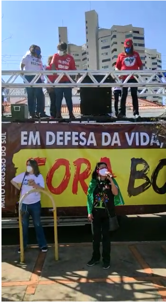 No Mato Grosso do Sul, a militância comunista também esteve presente em ato realizado em Campo Grande e outros municípios, como Corumbá, Dourados, Aquidauana, Jardim, Itaquiraí, Ponta Porã, Três Lagoas, entre outros . “O Brasil precisa derrotar este projeto que está acabando com o Brasil, acabando com o emprego, a saúde, a educação e a vida dos brasileiros e brasileiras”, disse Iara Gutierrez, presidenta do PCdoB-MS. E acrescentou: “Aqui é fora Bolsonaro genocida!”.
