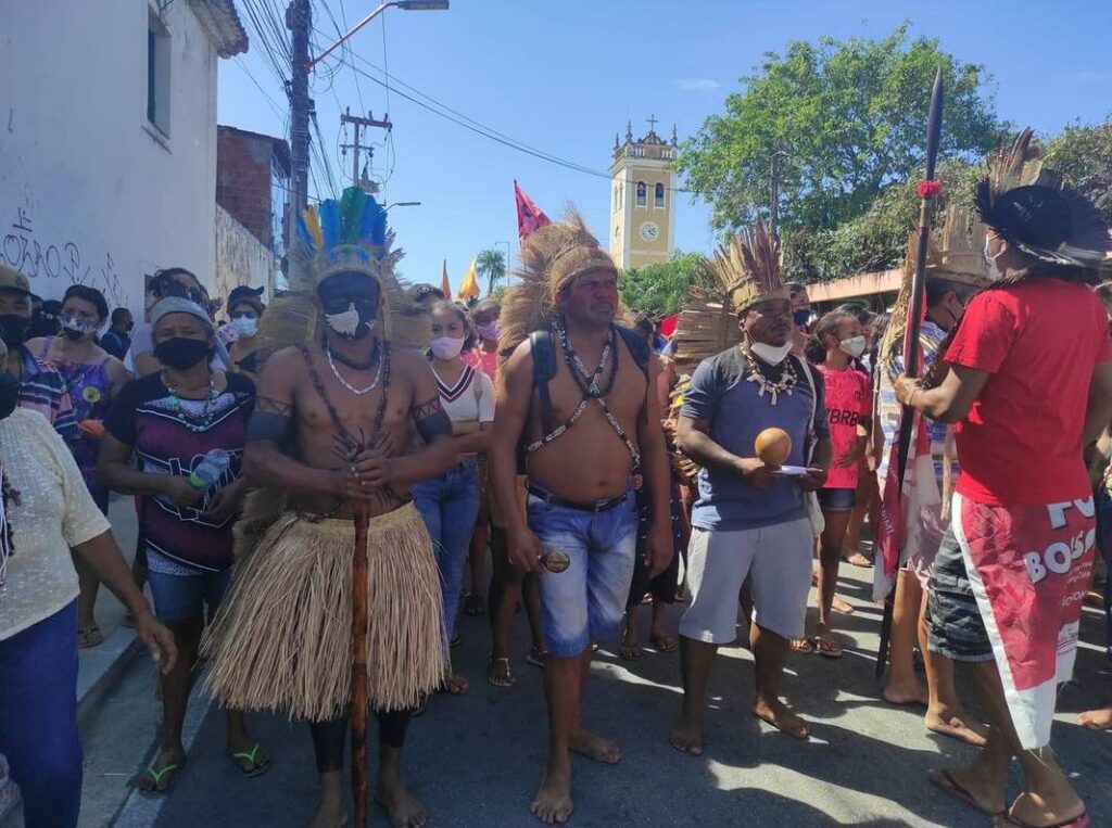 Em Caucaia, região metropolitana de Fortaleza, representantes de povos indígenas uniram-se aos trabalhadores e estudantes na jornada de luta contra o governo genocida de Bolsonaro. Confira as imagens abaixo: