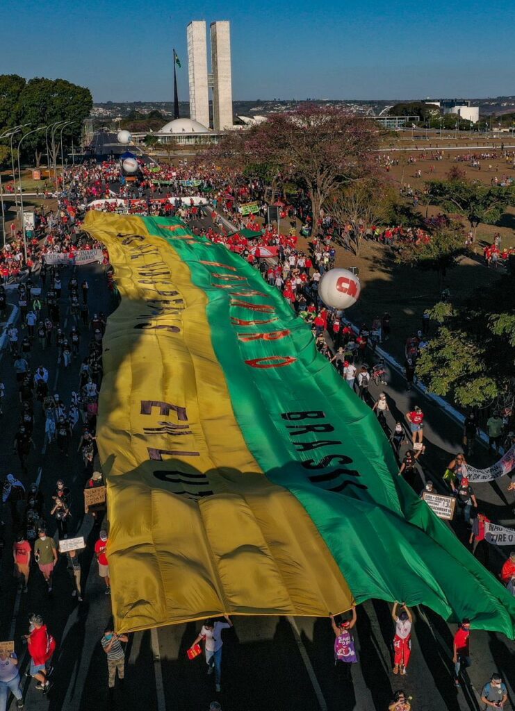 Na capital federal, milhares de manifestantes ocuparam a Esplanada dos Ministérios na tarde deste sábado (24). A concentração para manifestação em Brasília começou por volta das 14h30, na Praça da República e seguiu em caminhada até o gramado do Congresso onde se deu o desfecho de mais este ato político-social em oposição ao governo Bolsonaro. A militância comunista empunhavam as bandeiras do PCdoB e do Brasil, juntamente com a militância da UJS e dos movimentos sociais que compareceram no ato.