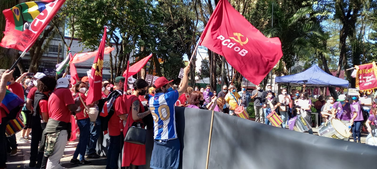 Na Praça do Derby, em Recife, o presidente estadual do PCdoB-PE, Marcelino Granja subiu no poste para hastear a bandeira do PCdoB no ponto mais alto do ato. A jornada do #24JForaBolsonaro  acontece em várias cidades do estado.